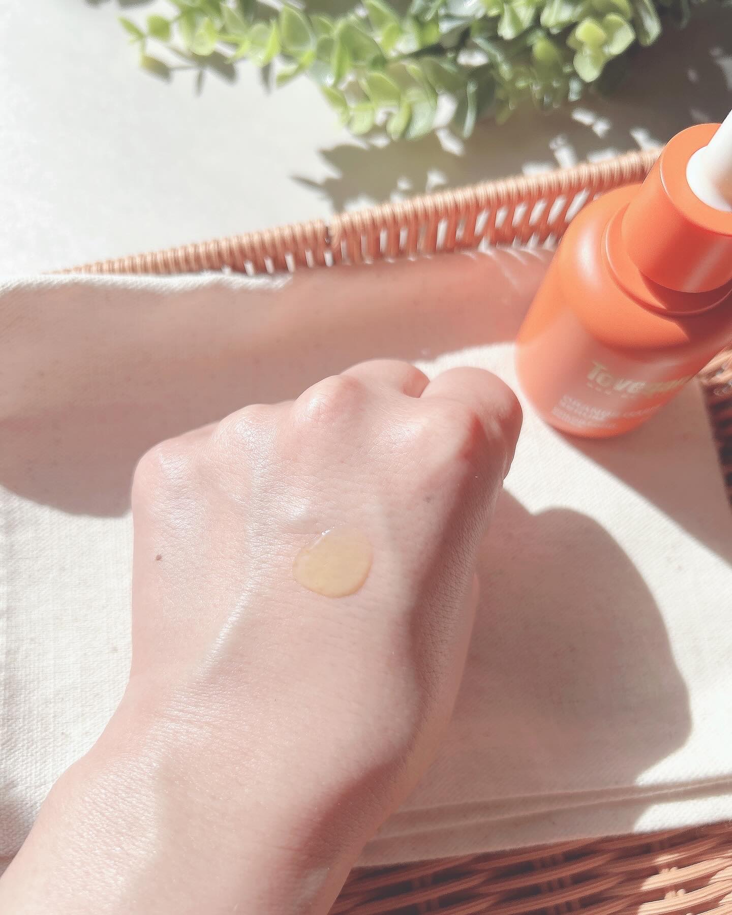トゥヴィガンの人気製品オレンジオアシスセラムがトーンアップ効果がUPしてリニューアル✨ ☑4種トーンアップ成分で透明感のある肌へ導く 薄オレンジの水分感たっぷりのみずみずしいテクチャー。 ビタミンC特有のベタつき感がない、爽やかな使用感がとっても使いやすい◎ ブライトニングとエイジングケアを一度にできるのも嬉しいポイント! さらに肌バリア強化成分配合で肌に優しい使用感で健やかな肌へサポートしてくれる。