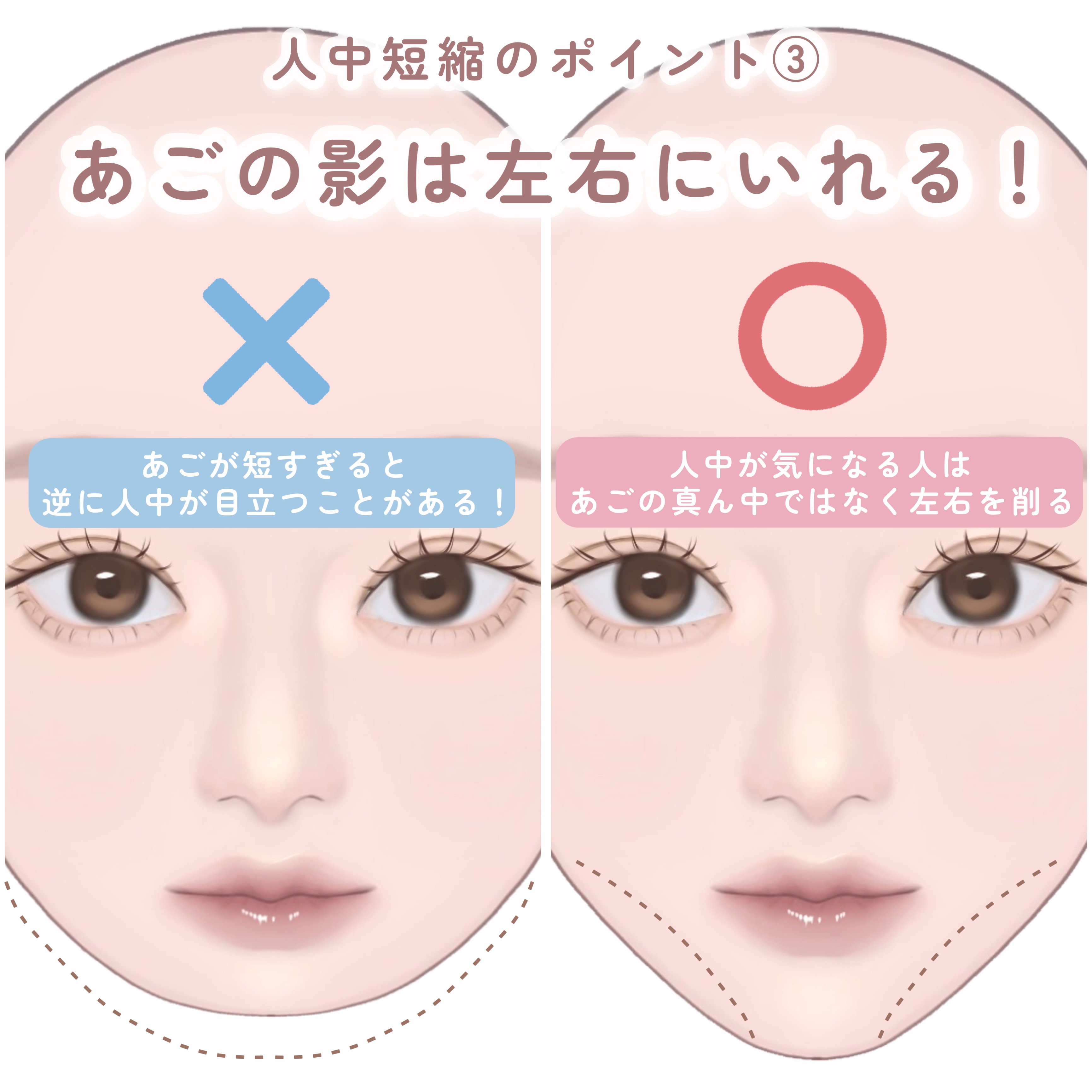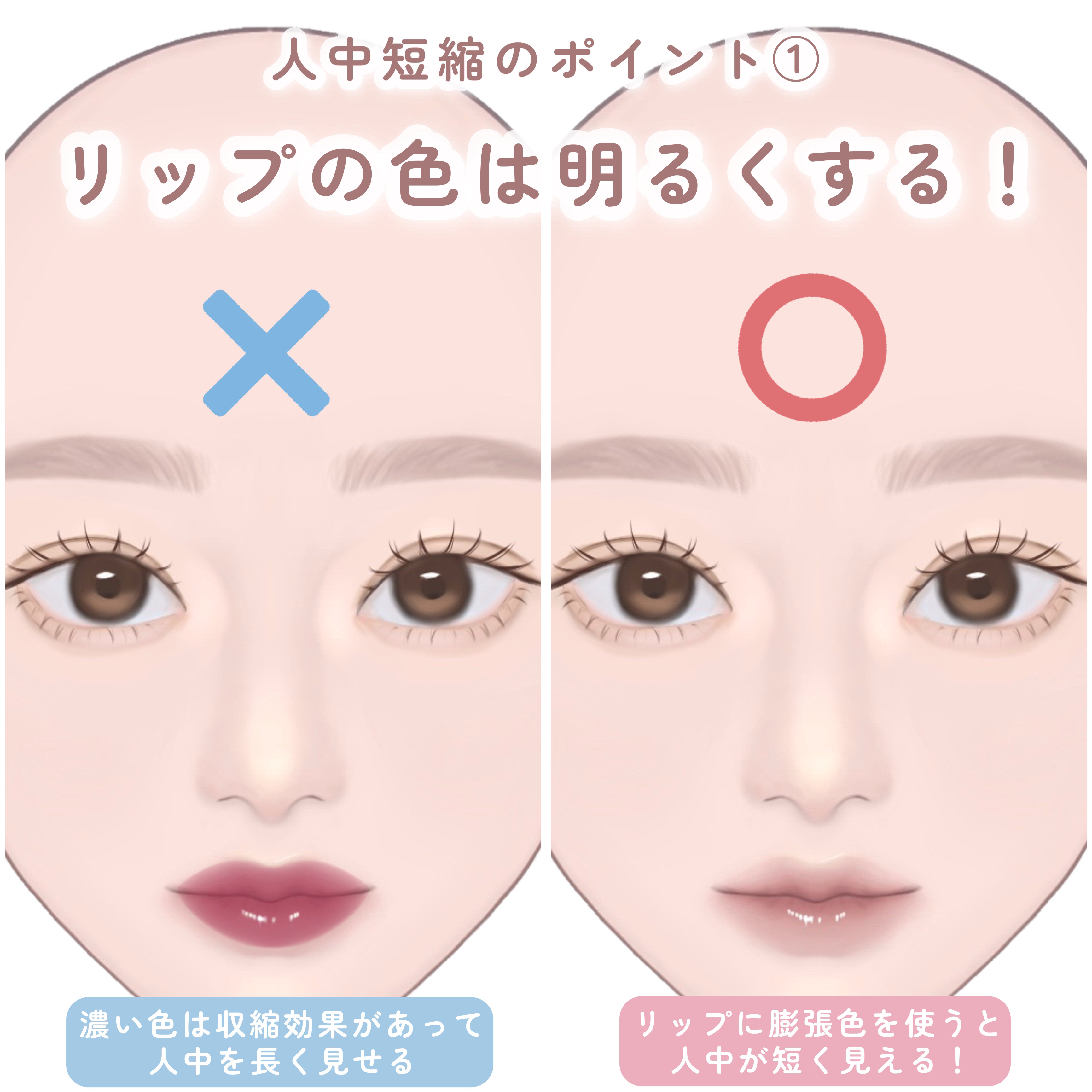 人中短縮メイク!! 人中が短いとのっぺり感が減って可愛らしい印象になります!面長解消にも🙆♀️ 逆に人中が長めだと大人っぽい、男性的な印象になるので、自分の好みに合わせて取り入れてみてください! ぜひ参考にしてください〜!