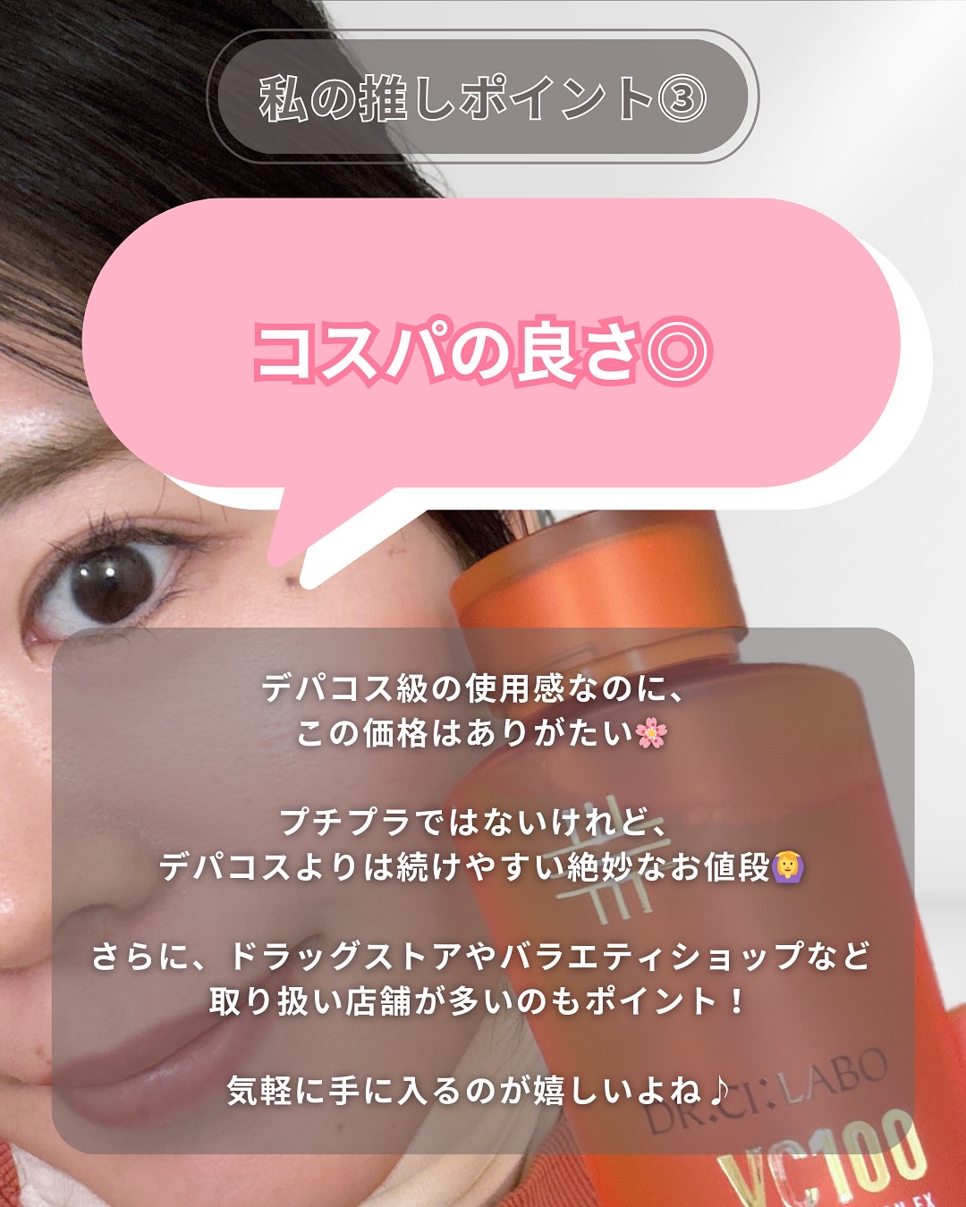 なんとこちらの化粧水にはマイクロ高浸透ビタミンC*1 が配合されているんだって😳👏 とろっと濃厚なテクスチャなのに、肌なじみの良さに驚き✨ 爽やかな柑橘の香りも、サッパリしていてすごく嬉しい♡