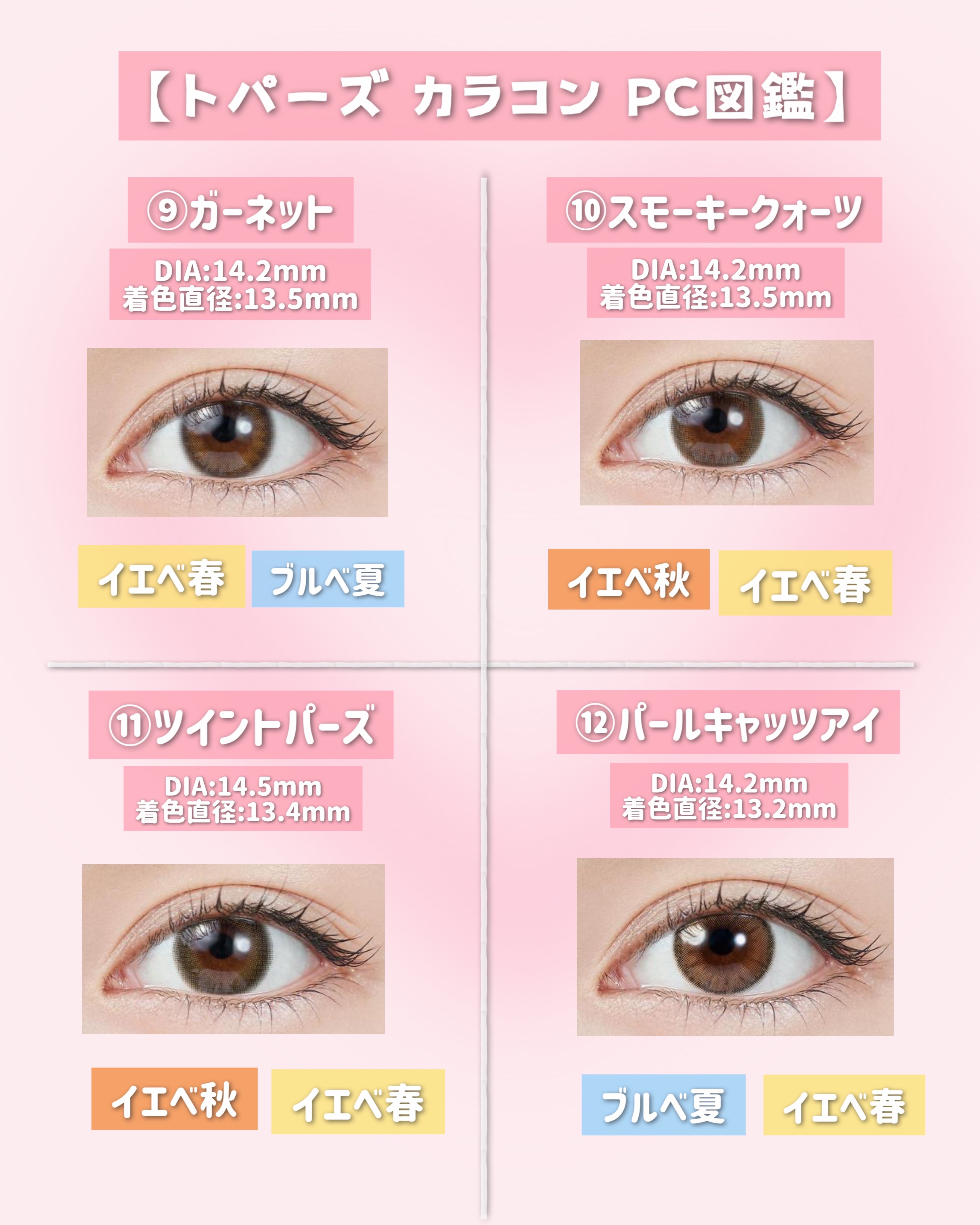 トパーズのカラコン2色レビュー💖使用カラー:🤍ストロベリークォーツほんのり赤み×ピンクブラウンカラコン小さめサイズとぼかしフチだからなじみやすい。ナチュ盛れで甘いお顔の雰囲気になるよ!【スペック】1day/DIA14.2mm着色直径13.5...