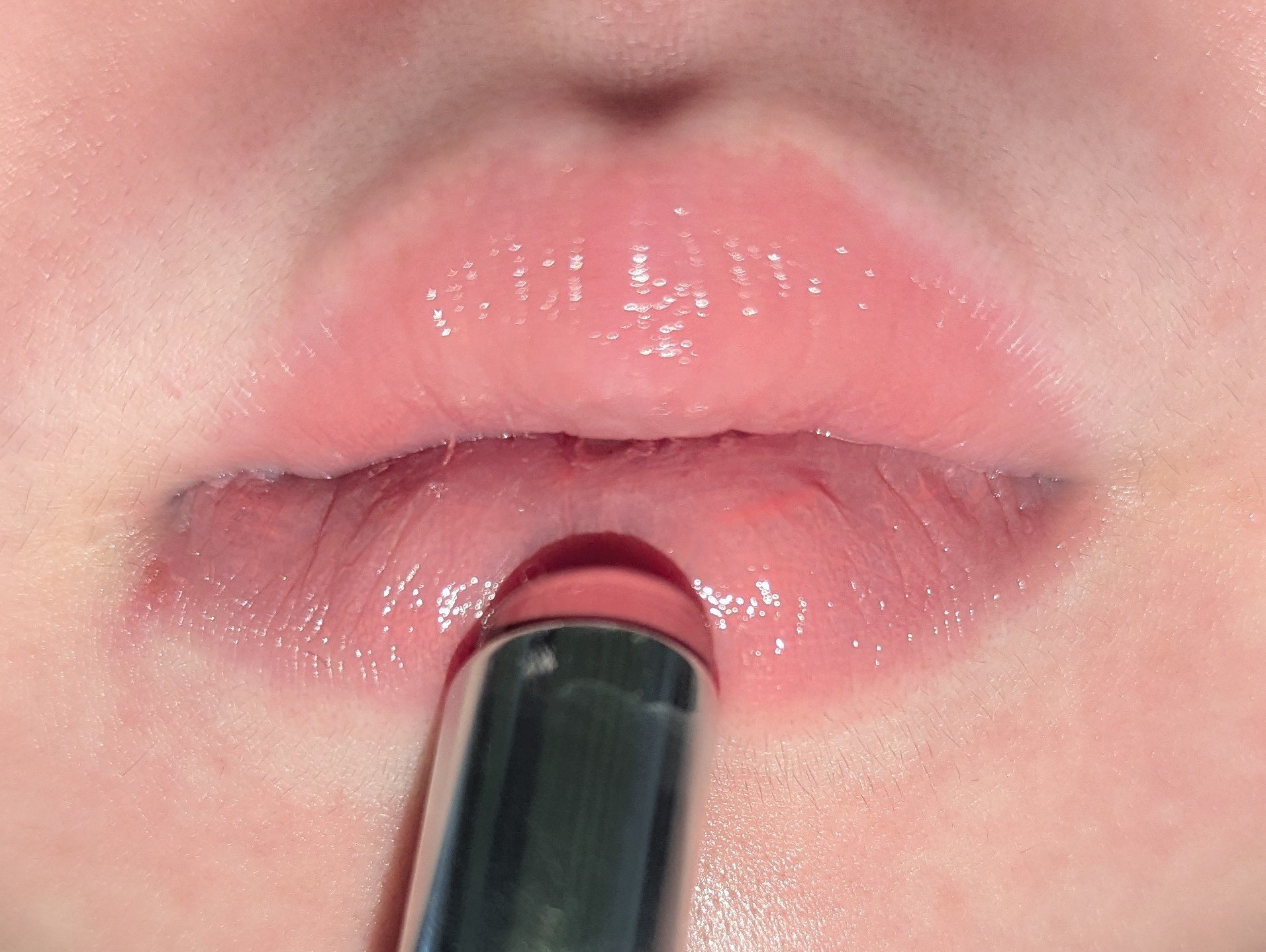 チャイティーピンクはくすみのあるヌードピンクで、ライトありだとほんのりくすみのあるヌードなピンクカラーで、素の唇をしっかり明るく可愛くしてくれます! みずみずしさを感じるツヤ感とグロスでしかだせないぽってり感が両立してるんです!!感動! 歯にめちゃくちゃ付きます!ここめちゃくちゃ辛い…