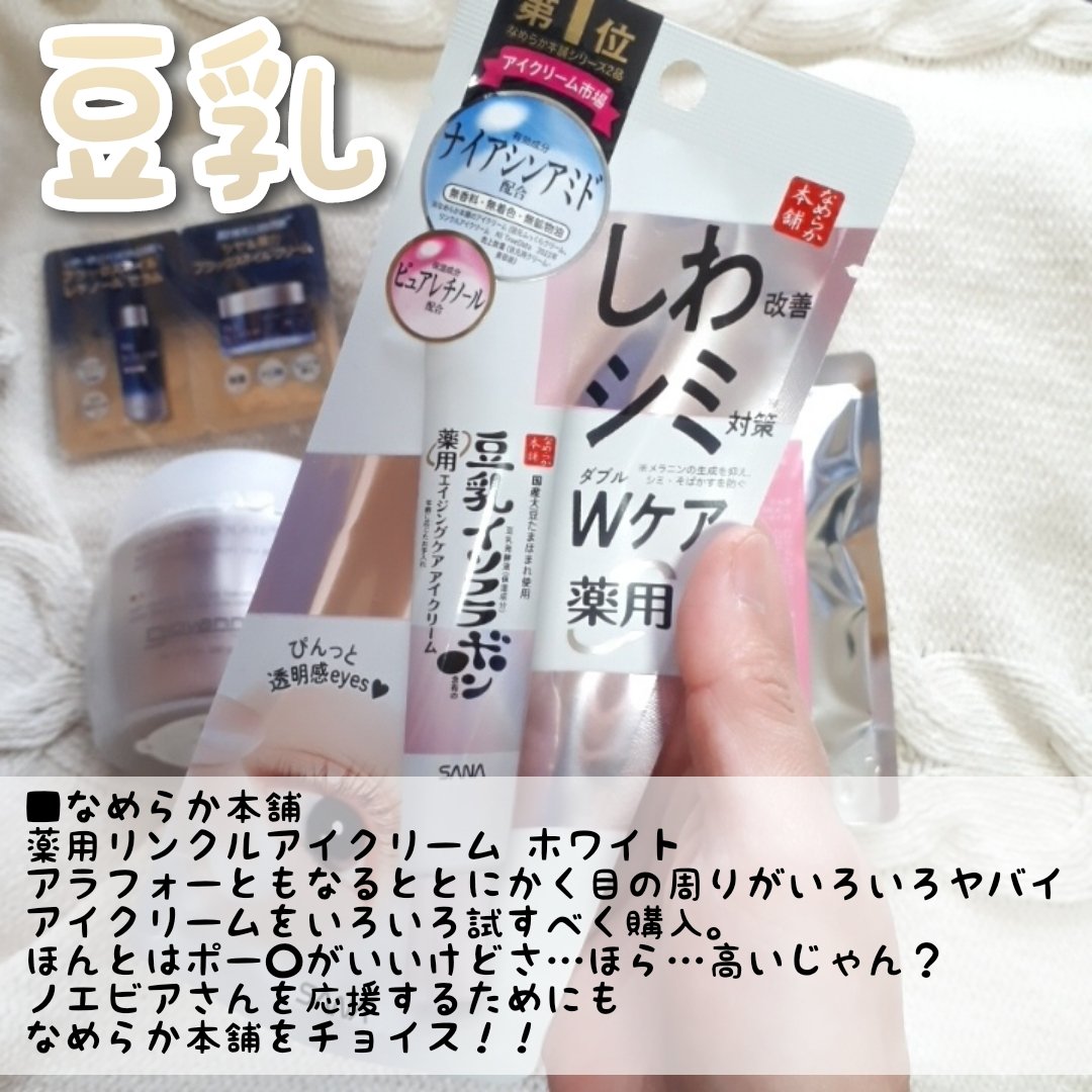 LIPSフェスタ購入品🥰💫なめらか本舗 薬用リンクルアイクリームホワイト ¥1,100→リピート!これ塗ると次の日の目の開きが違う😳アイクリームは色々使ったけど、目に見えた効果があったのはこれとSK-IIだけ。プチプラでこの効果はすごい👍✨ア...
