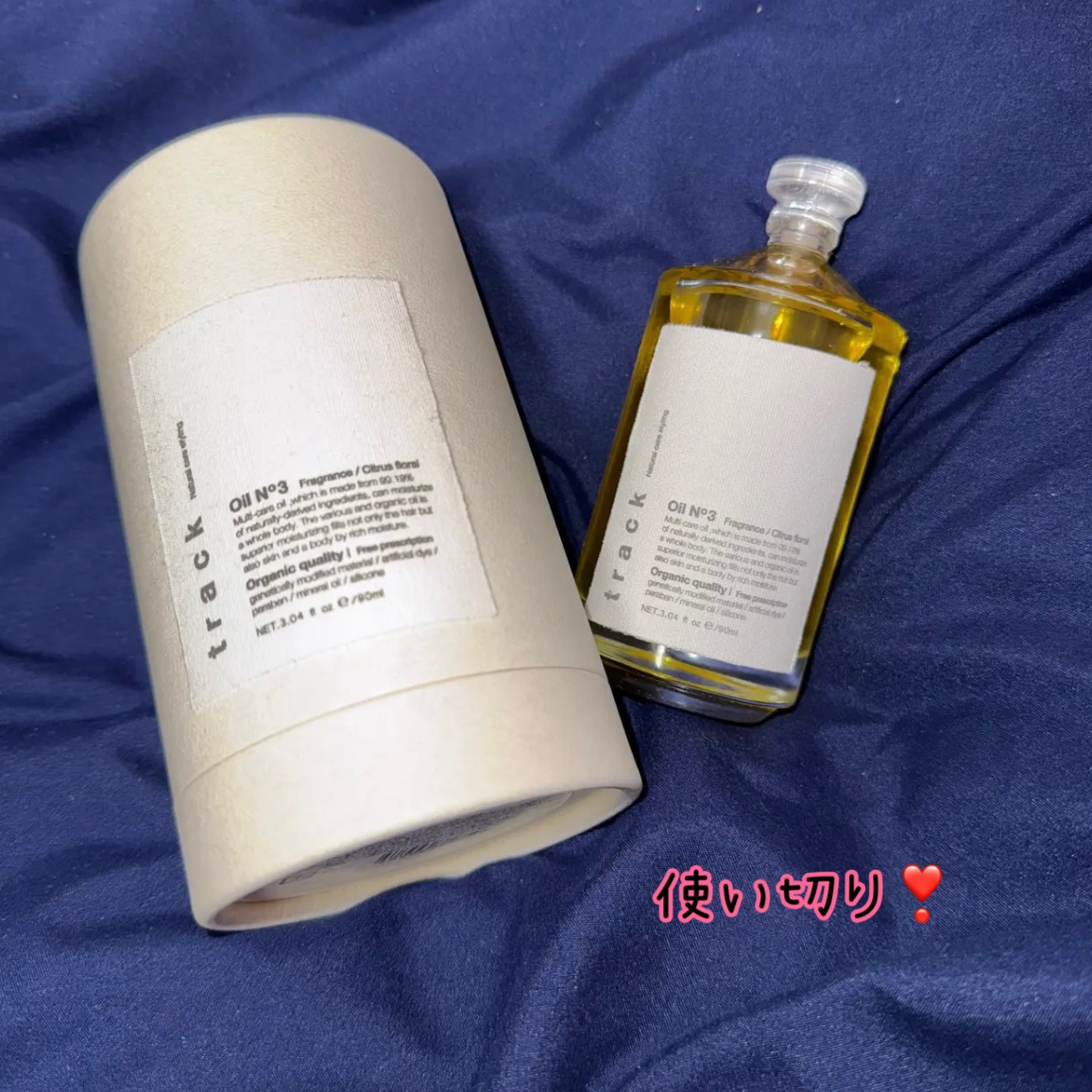 - ■track oil No1(天然由来成分100%)フレッシュシトラスの香り 優しいツヤとうるおいで上品な素髪感を ■track oil No2(天然由来成分99.2%)シトラスハーブの香り 凛としたツヤとみずみずしさで端正な印象を ■track oil No3(天然由来成分99.19%)シトラスフローラルの香り 息づくツヤと深いうるおいでまとまりある表情を