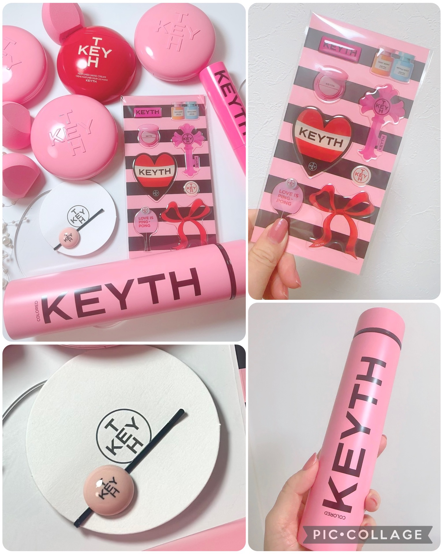 🩷KEYTH✰トーンアッププライマー✰ピンクマグネットクッションファンデーション✰パフュームドキースハンドクリーム韓国コスメKEYTH(キース)の新作コスメどれもめっちゃかわいい🩷keythさまからデコれるステッカー、スリムな水筒、ヘアピンと...