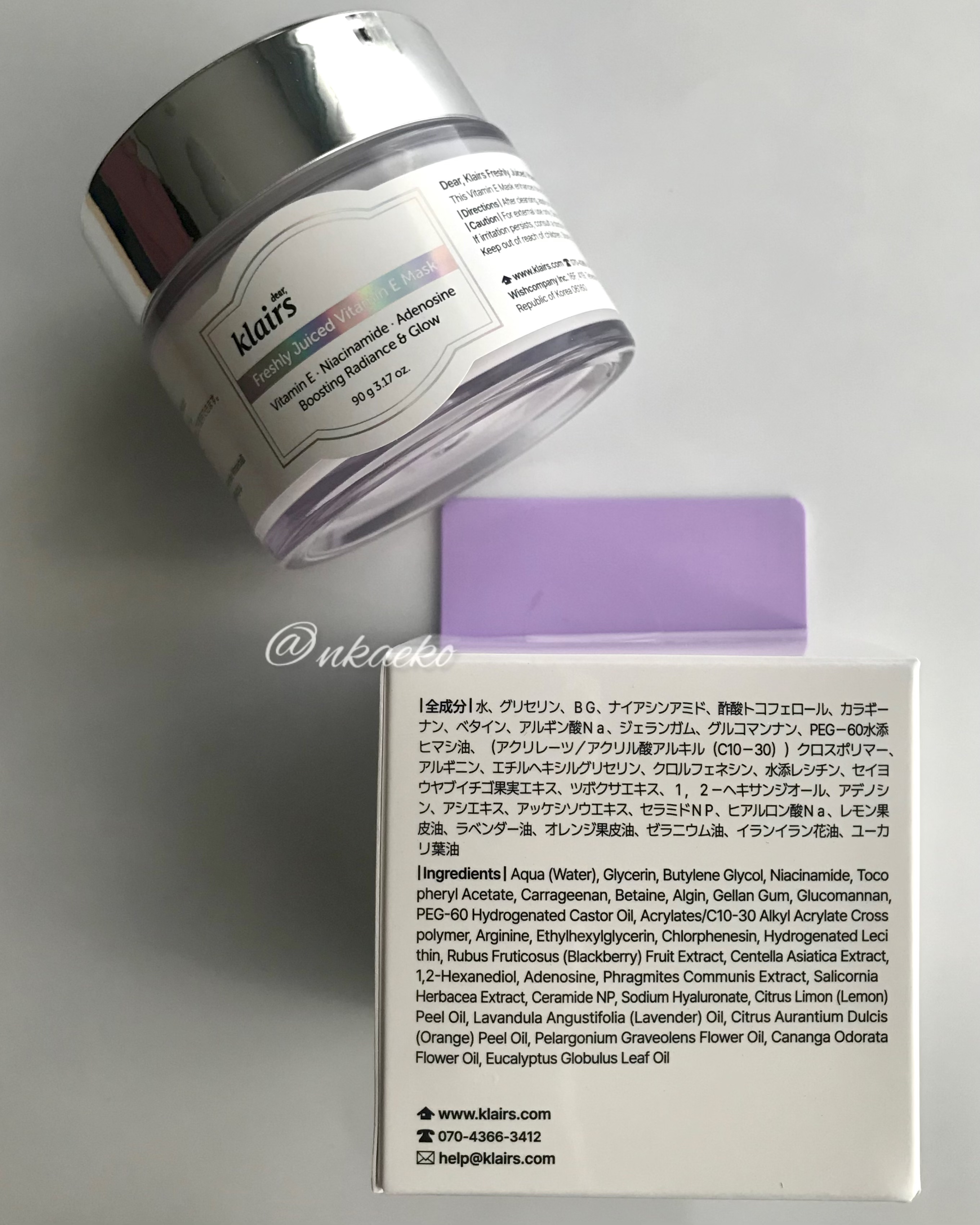 Klairs フレッシュリージュースドビタミンEマスク(90g) | 2,700円 |