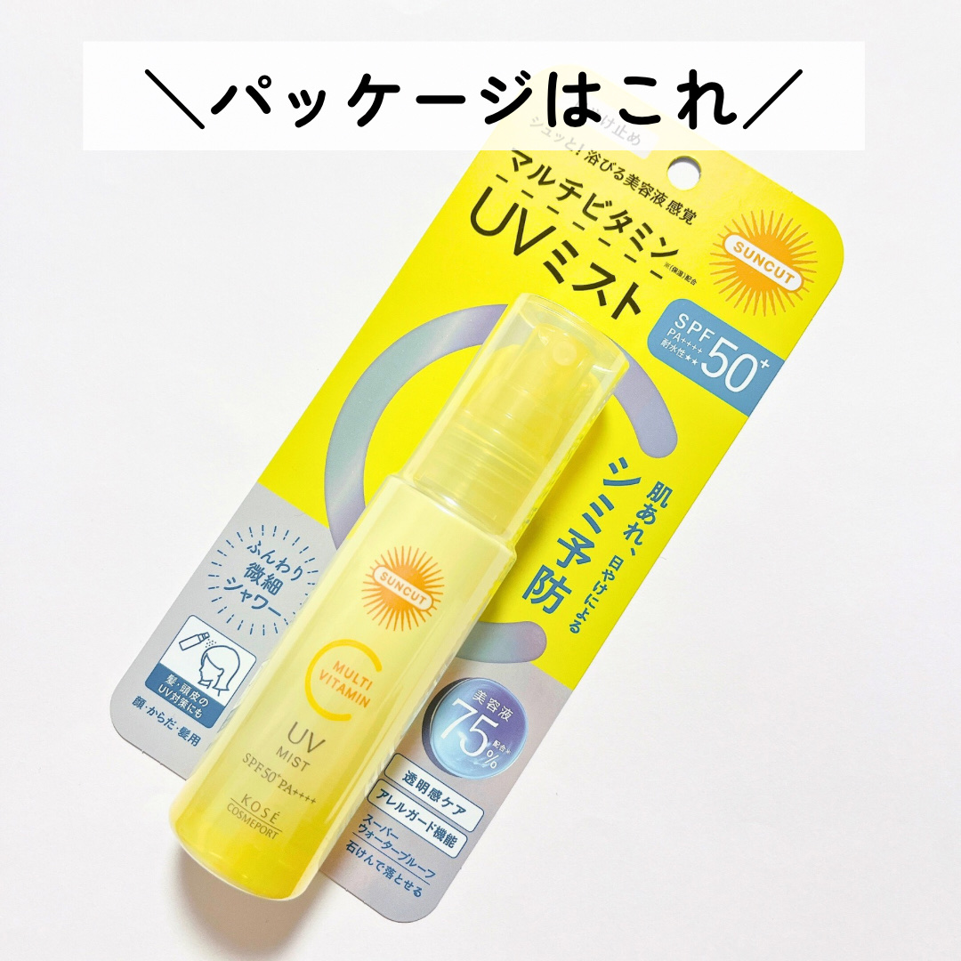 日やけによるシミ・肌あれを予防しながらUVケア 美肌づくりに不可欠なマルチビタミンが厳選配合されています。 ミストタイプで手軽に使えるのが楽ちん 顔やボディだけでなく、髪の毛にも使えるのも便利 アレルガード機能で花粉・ちり・ほこり・PM2.5などの微粒子をブロックてくれるそうで、花粉が気になる季節にもぴったりなUVミストです。