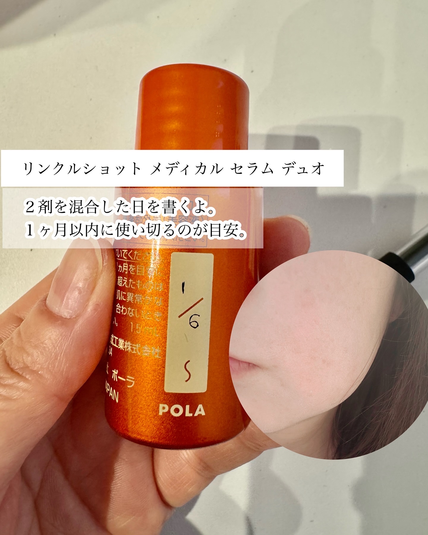 - 【医薬部外品】 【目指す肌】 シワを改善し、つるんとなめらかで、うるおいに満ちた、ぱんっと弾けるようなつややかなハリ肌を。 【成分】 ポーラ独自開発のシワ改善有効成分「ニールワン®」を配合。 ニールワン®は、シワの一因である、コラーゲンを分解する好中球エラスターゼの働きを抑え、真皮のコラーゲン線維をキレイに整えることでハリ弾力を高め、シワを改善する。 新ポーラオリジナル複合保湿成分「二ーレナジー※4」「Dリキッド※5」、ポーラオリジナル複合保湿成分「NEREリキッド N※6」を配合。 【感触】 みずみずしくまろやかに伸び広がり、すばやく全顔になじむモイストフレッシュテクスチャー。 【処方】 ①シワ改善有効成分ニールワン®を全顔になじみやすいみずみずしいテクスチャーで使用するために、2つの剤を自分で混ぜ合わせる、ポーラ独自のリンクルショットミックス処方を搭載。自分で混ぜることでみずみずしい感触と、後に使うアイテムのなじみやすさを両立。 ②ピンとしたハリ感ベールを形成し、つるんとなめらかな仕上がりを目指すベール設計。さらに、モイストキャッチャーを配合。 うるおいを与え、ベール内のうるおいをキープし、後に使うアイテムがなじみやすいベール。 ◆アレルギーテスト済み(全ての方にアレルギーが起きないというわけではありません) ※4:シラカバエキスとユーカリエキスの複合成分 ※5:コウキエキス-2とシナノキエキスの複合成分 ※6:油溶性桃葉エキスとスギナエキスの複合成分