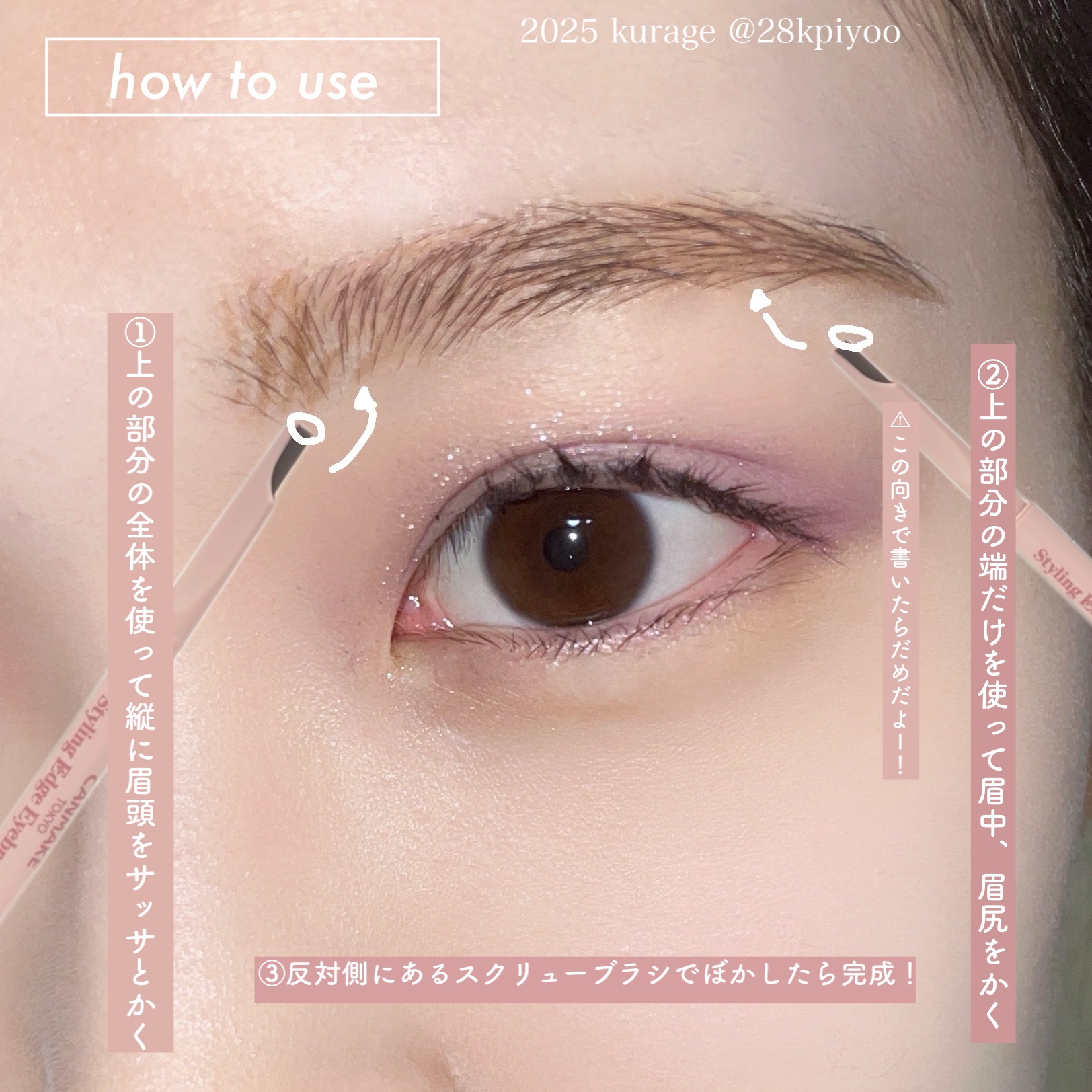 なんと0.8mmの薄型芯!?? キャンメイク スタイリングエッジアイブロウ 01 ナチュラルブラウン ¥770 めちゃくちゃ細くて細かいところも綺麗に描ける! 厚さは極薄だけど芯幅は4.0mmあるので安定して描けるよ! 水・汗・皮脂・こすれに強くて消えやすい眉尻もしっかりキープ♡ 反対側にはスクリューブラシも付いてるよ!