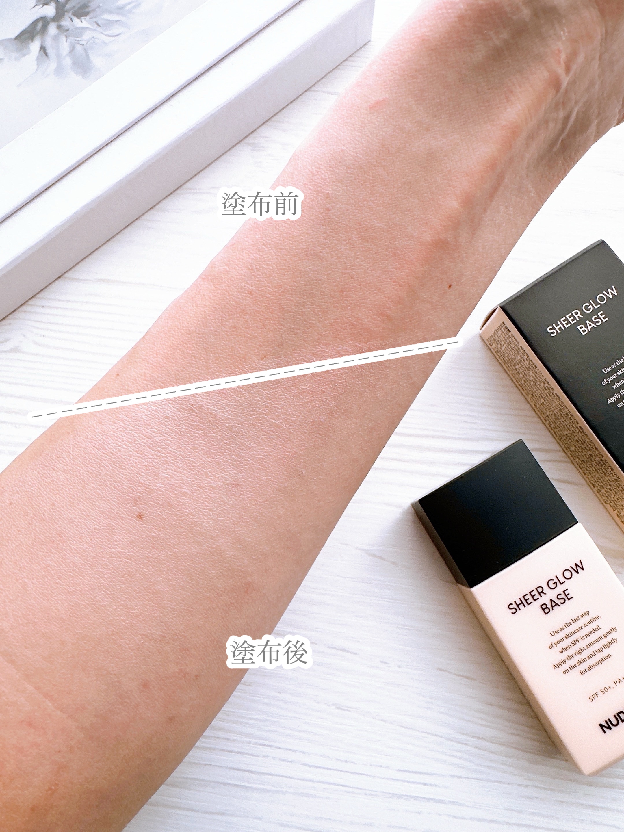 なめらかなクリームみたいな テクスチャー。 溶け込むように肌に馴染んで いってつけた後はサラッサラ。 本当ビビったw つけた後もとてもナチュラルな肌に なって、自分の肌に初めて馴染んで くれたかも…。 (今まではトーンアップを主に使用のため ヌーディーベージュは初めての使用) 汗とか皮脂を抑えてくれて 悩みのTゾーンのテカリや毛穴の ぼかしをしてくれた印象があったよ。 推奨目安は約1.5cmだけど私は そこまで使わず。 伸びが良いからコスパも良いし 本気でリピ決定。 混合肌の私は今まで数知れずの 下地を使ってきたけど、これ… マジでダントツだわ。 化粧下地の中でも適量(推奨目安) をつけ終わった後でもベタベタな ものもあって、ん〜って感じのも あったけど(もちろん毎回 ティッシュオフしてるよ) うん、好きだわ、これ。