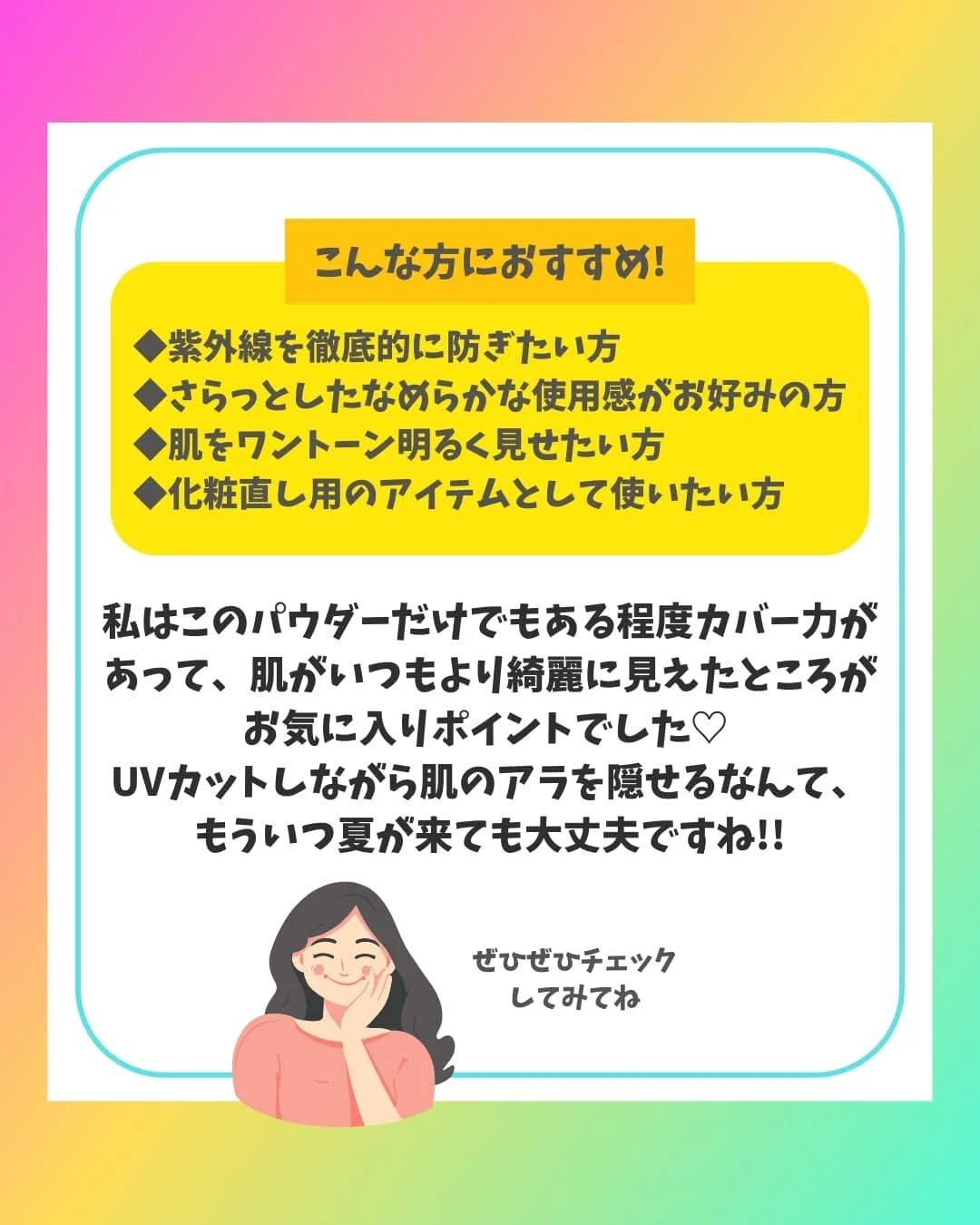 - ãå»è¬éšå€åã â æåŒ·UVã«ããïŒ*9ïŒïŒSPF50+PA++++ïŒã§UVèæ°Žæ§ââãå Œãåããæ¥äžã®å¡ãçŽãã«ãæé©ã§ãã â æççäœçšããã€èèã鲿¢ã®æå¹æåãã°ãªãã«ã¬ãã³é žã¹ãã¢ãªã«ããé åããŸããã â ãã«ãŒã©ã€ããè¿èµ€å€ç·ãã«ããããããŠããŒãé åãã玫å€ç·ä»¥å€ã®å ããã培åºçã«å®ããŸãã â 5çš®ã®æ©èœæ§ããŠããŒïŒ*10ïŒãé åããã¿ãèªç¶ã«ã«ããŒããªããéæçŸèã«å°ããŸãïŒ*11ïŒã â ç®èã峿¹ã«ã€ããæ°ããªèŠç¹ã§ã4çš®ã®ããŠããŒïŒ*12ïŒã«ãããé åãããã«ãã¹ãŒããŒãŠã©ãŒã¿ãŒãã«ãŒãã§ãã â ãã现ããããŠããŒã§ãè²ã¯èªç¶ãªãã«ãããŒãžã¥ã§ãã *9 åœå åºæºæé«ã¬ãã« *10 å è£æ£ããŠããŒããã«ããã£ã¡ã³ã·ã§ã³ããŠããŒãã©ã€ããªãã¬ã¯ãããŠããŒãã°ããã·ãŒããŠããŒããã©ã€ãããŒã«ãã«ãŒããŠã㌠*11 ã¡ãŒãã£ãã广ã«ãã *12 ç®èåºå®åããŠããŒãç®èåžçããŠããŒãããã¿ãããã¯ããŠããŒãæ¥æ°Žã³ãŒãããŠããŒ