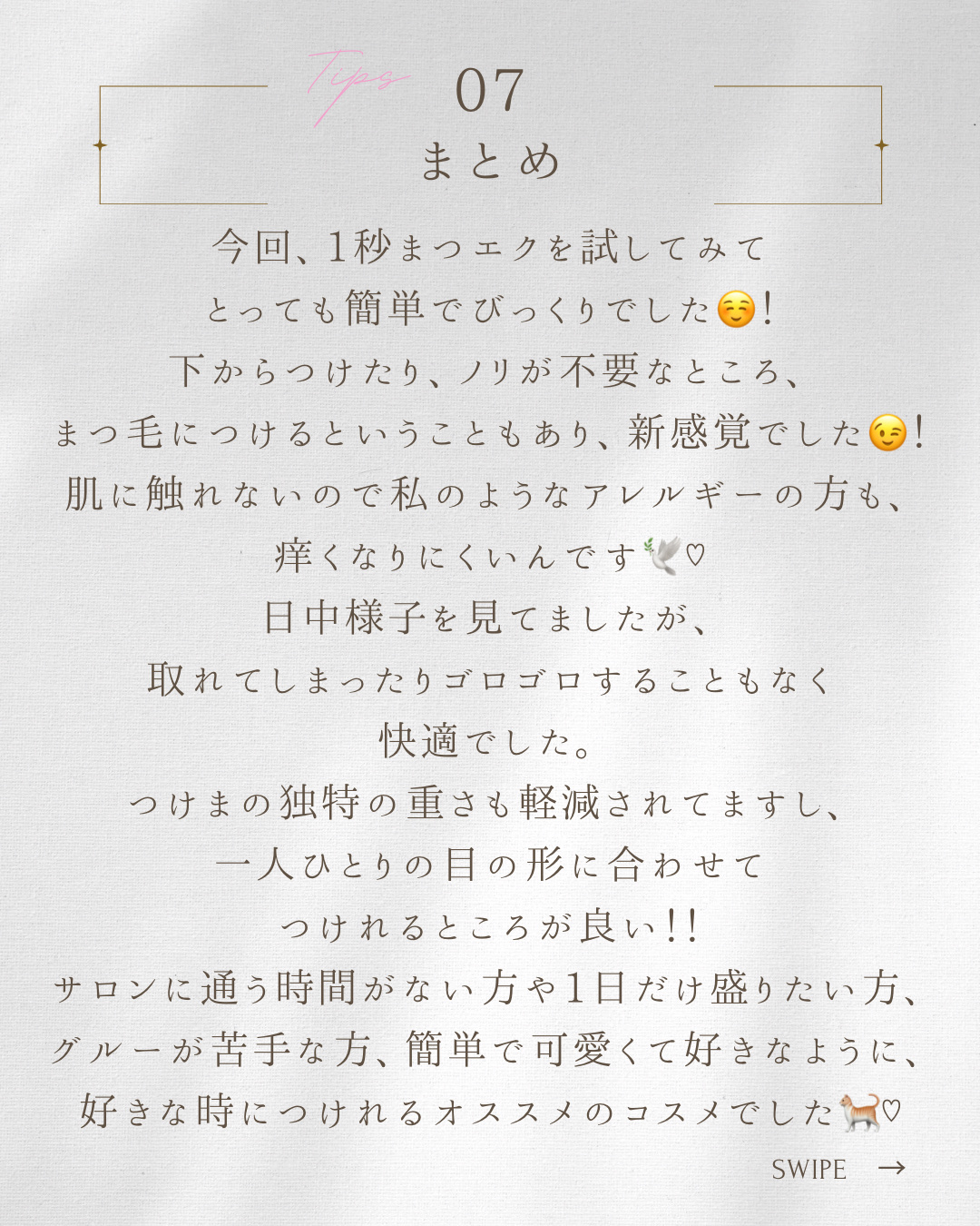 高品質の毛束を簡単に装着可能! ノリなしで1秒で目元の印象を変える次世代付けまつ毛! ノリ不要のサロン品質つけまつげ✨ 肌に触れずまつげに装着だから、グルーアレルギーの心配が少なく、敏感肌の方にも優しい設計。 一日中付けていても取れにくい、しかも簡単にオフできる便利さ💯