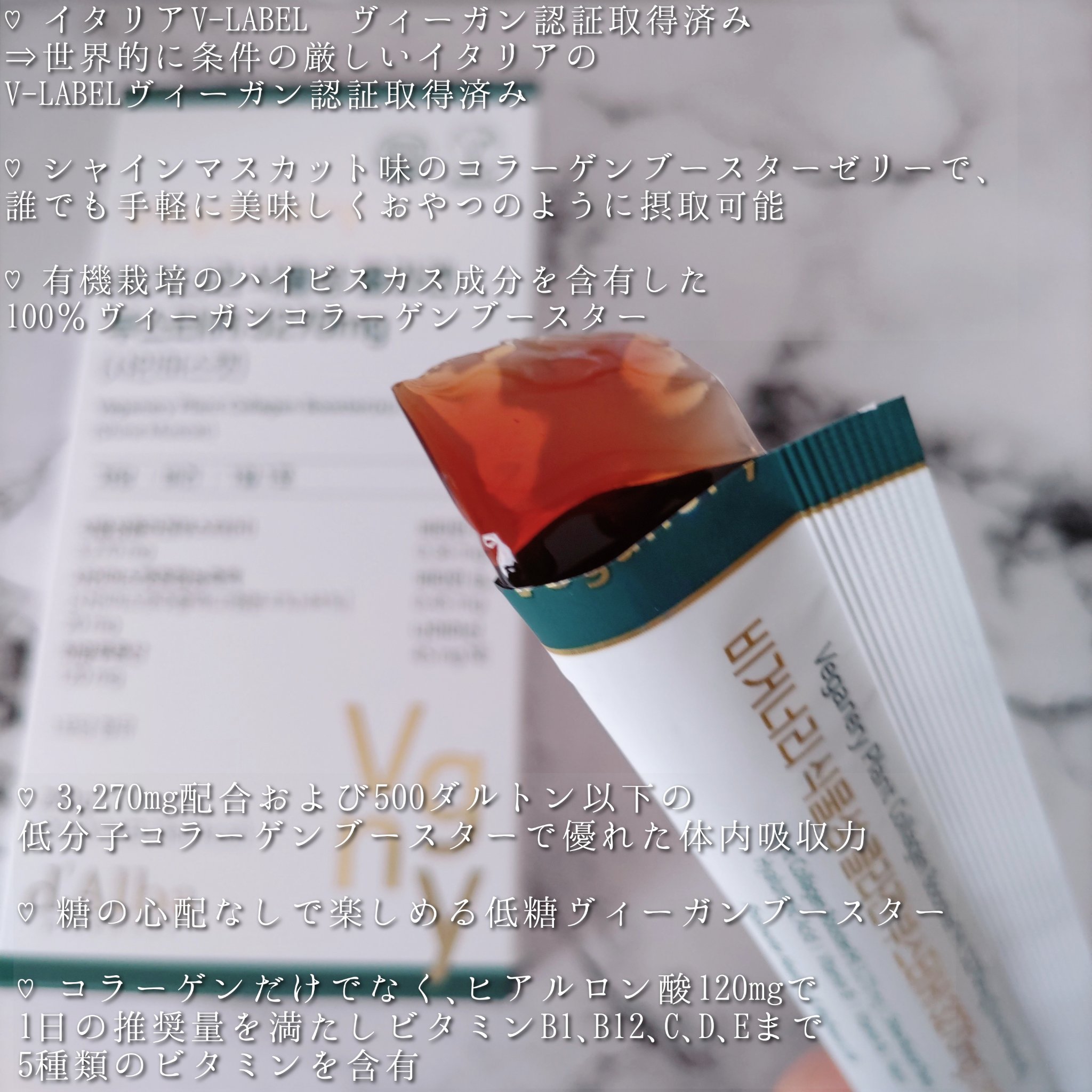 韓国スキンケアで大人気のダルバからインナーケアが登場 ̖́- #ヴィーガナリー植物性コラーゲンブースター 💚 100%ヴィーガン低糖ゼリーで、ダイエットや手軽な食事管理にもおすすめ♪ イタリアV-LABEL ヴィーガン認証取得済み🌿 ⇒世界的に条件の厳しいイタリアのV-LABELヴィーガン認証取得済み