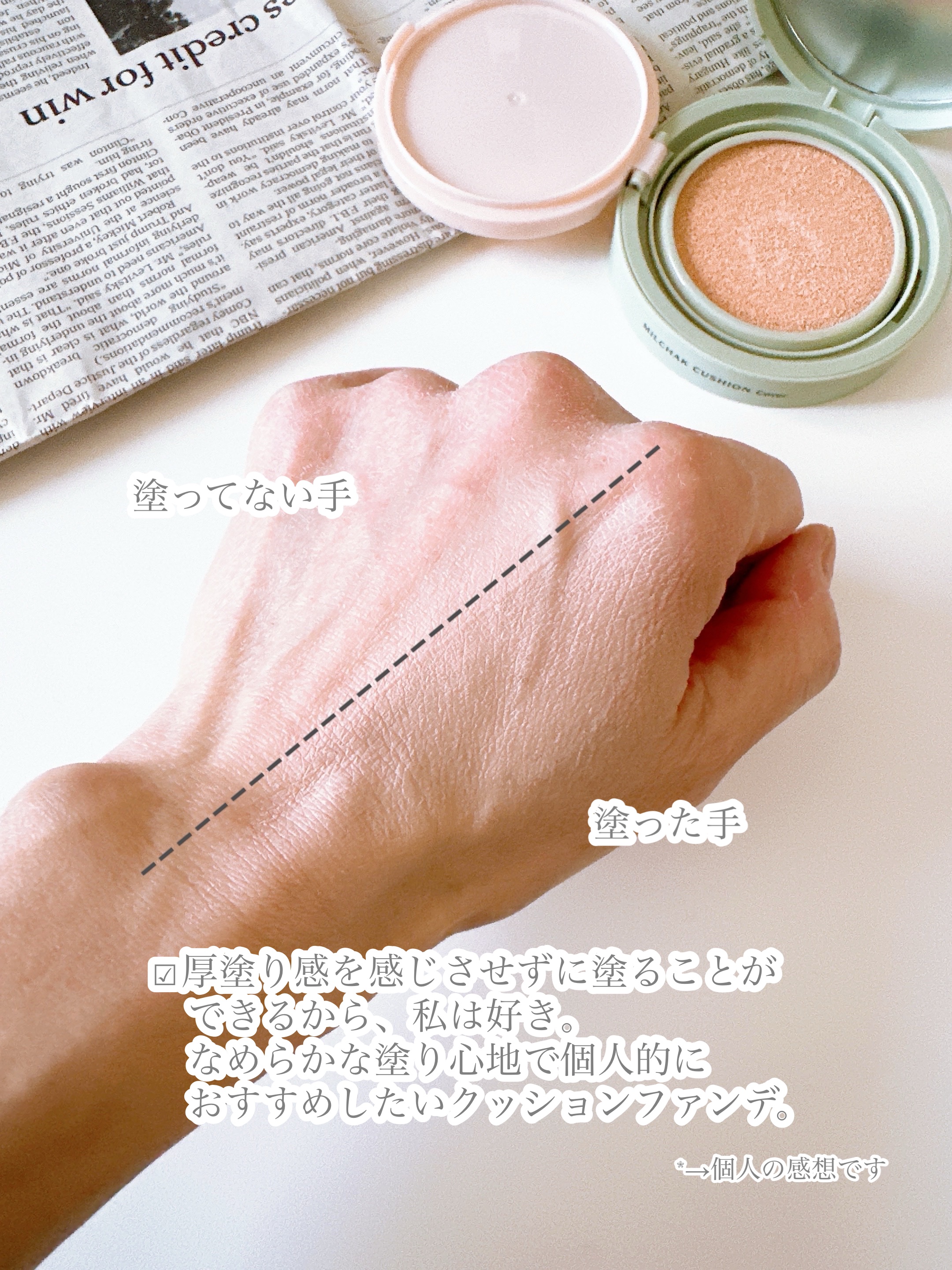 なめらかなクリームみたいな テクスチャー。 溶け込むように肌に馴染んで いってつけた後はサラッサラ。 本当ビビったw つけた後もとてもナチュラルな肌に なって、自分の肌に初めて馴染んで くれたかも…。 (今まではトーンアップを主に使用のため ヌーディーベージュは初めての使用) 汗とか皮脂を抑えてくれて 悩みのTゾーンのテカリや毛穴の ぼかしをしてくれた印象があったよ。 推奨目安は約1.5cmだけど私は そこまで使わず。 伸びが良いからコスパも良いし 本気でリピ決定。 混合肌の私は今まで数知れずの 下地を使ってきたけど、これ… マジでダントツだわ。 化粧下地の中でも適量(推奨目安) をつけ終わった後でもベタベタな ものもあって、ん〜って感じのも あったけど(もちろん毎回 ティッシュオフしてるよ) うん、好きだわ、これ。