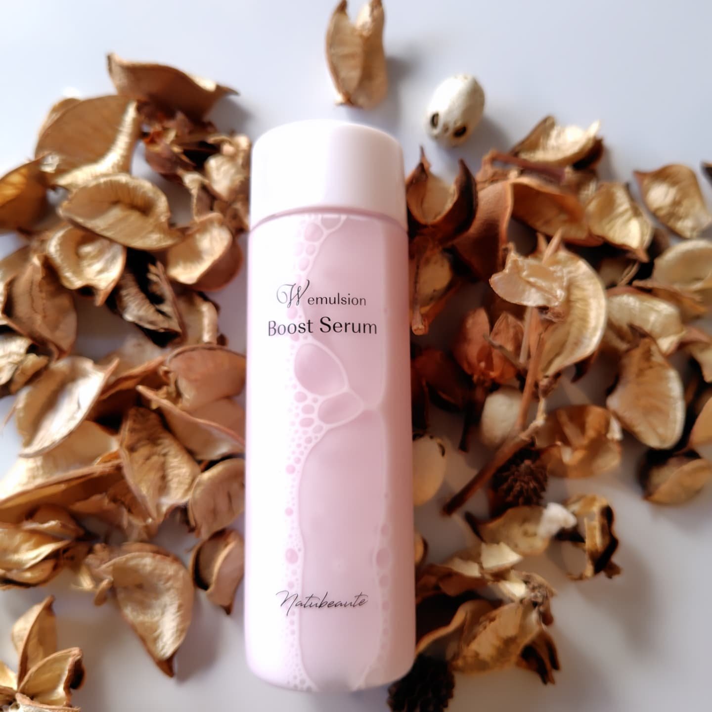 Wの乳化処方でうるおい肌に ピンク色の乳化層と透明の美容液層が2層になった導入美容液です✨ 高保湿&オイルフリーでべたつかない キメ・ツヤのある肌へ導く美容成分ガラクトミセス培養液(保湿成分)を水よりも多く使用しているため、 天然由来成分80%以上配合 の導入美容液で、見た目もかわいいピンク色は色素を使わない自然由来のカラー💗