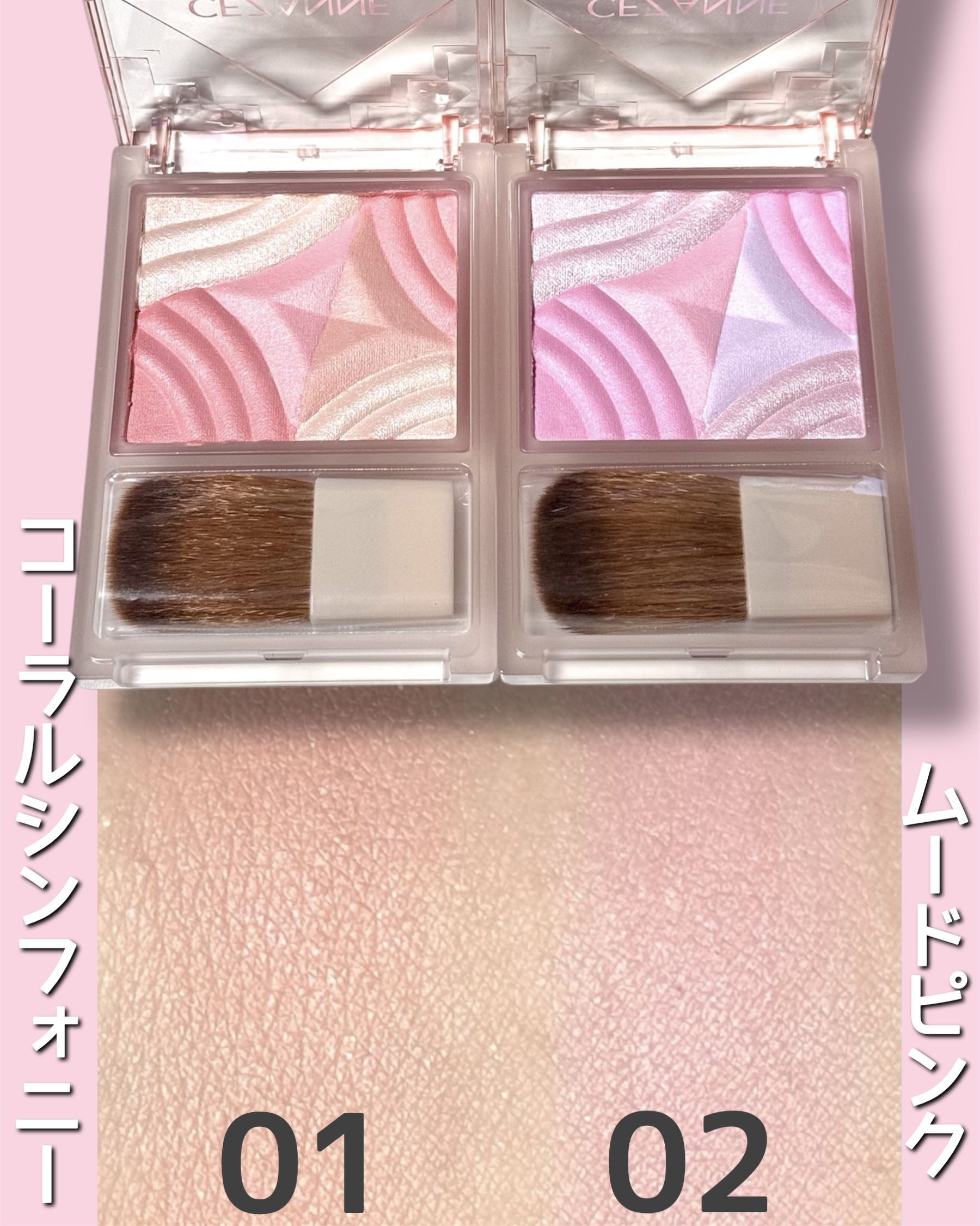 高コスパ&高クオリティなふわっと溶け込むグラデーション◎ ナチュラルな発色で失敗しにくく、パソカでも選びやすい多幸感カラーと透明感カラーの2色展開🩷 しっとり柔らかな粉質で粉飛びしにくく、これで781円はコスパ良すぎる…!