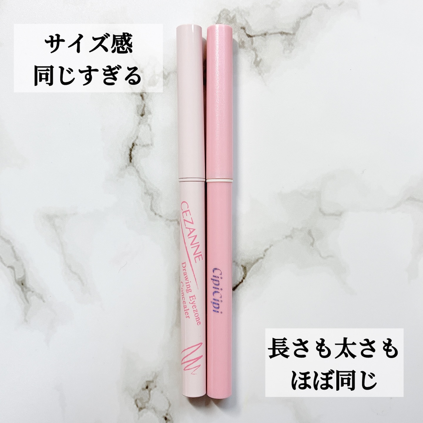 セザンヌの新作涙袋コンシーラー02番なじみピンクが、シピシピの02番いちごミルクと似てる! 色味はセザンヌのほうが、その名の通りなじみカラー! ベージュ強めの落ち着いたピンクで自然になじみます🤍 シピシピのほうがピンク感があり、しっかり涙袋を強調できる🎀