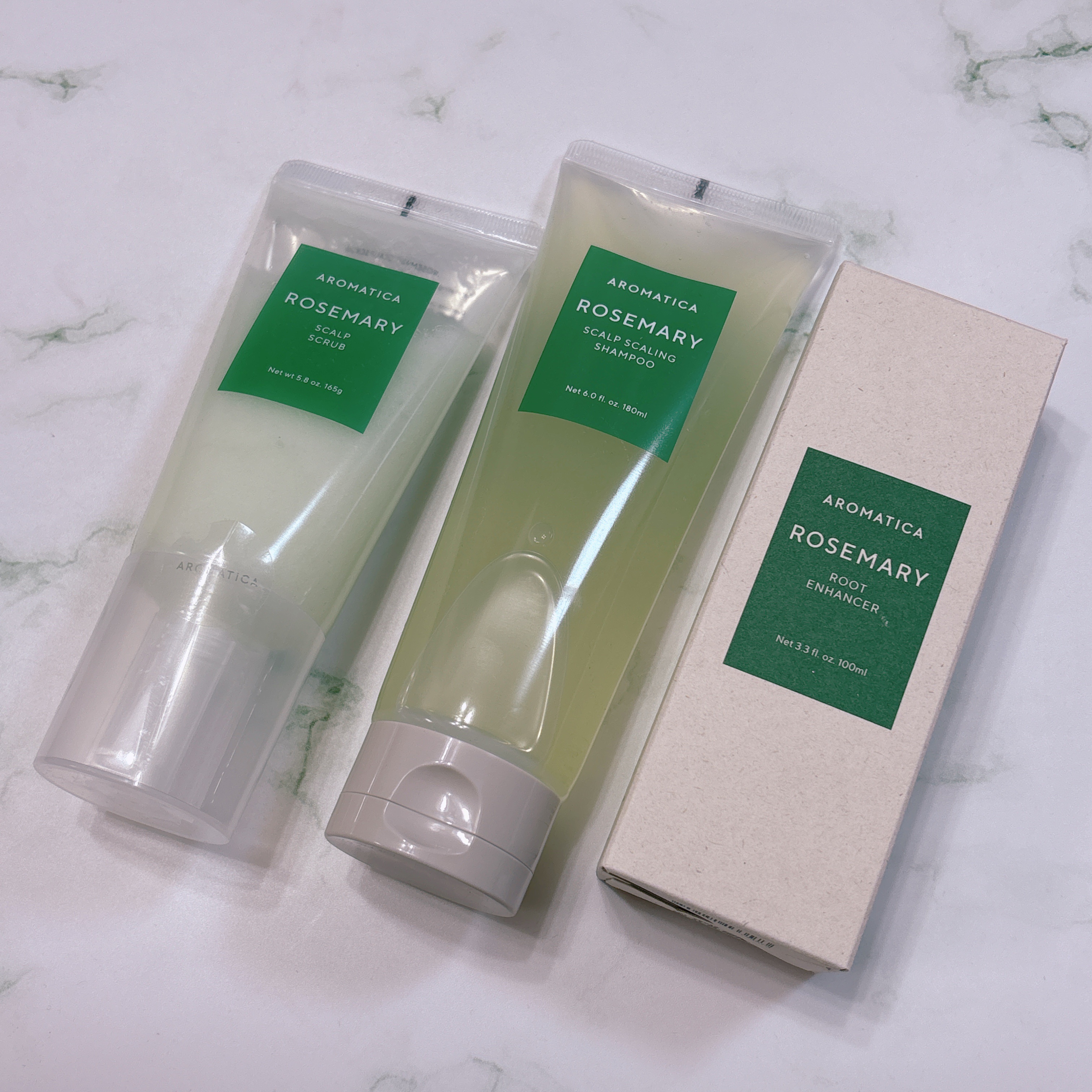 頭皮の活力に良いとされているローズマリーをはじめとしたアロマがブレンドされた贅沢なラインᡣ𐭩 シャンプーはすっきりした使用感と、さわやかな香りが◎ メントールが頭皮に活力を与え、頭皮が引き締まったような爽快感があります✨🌿