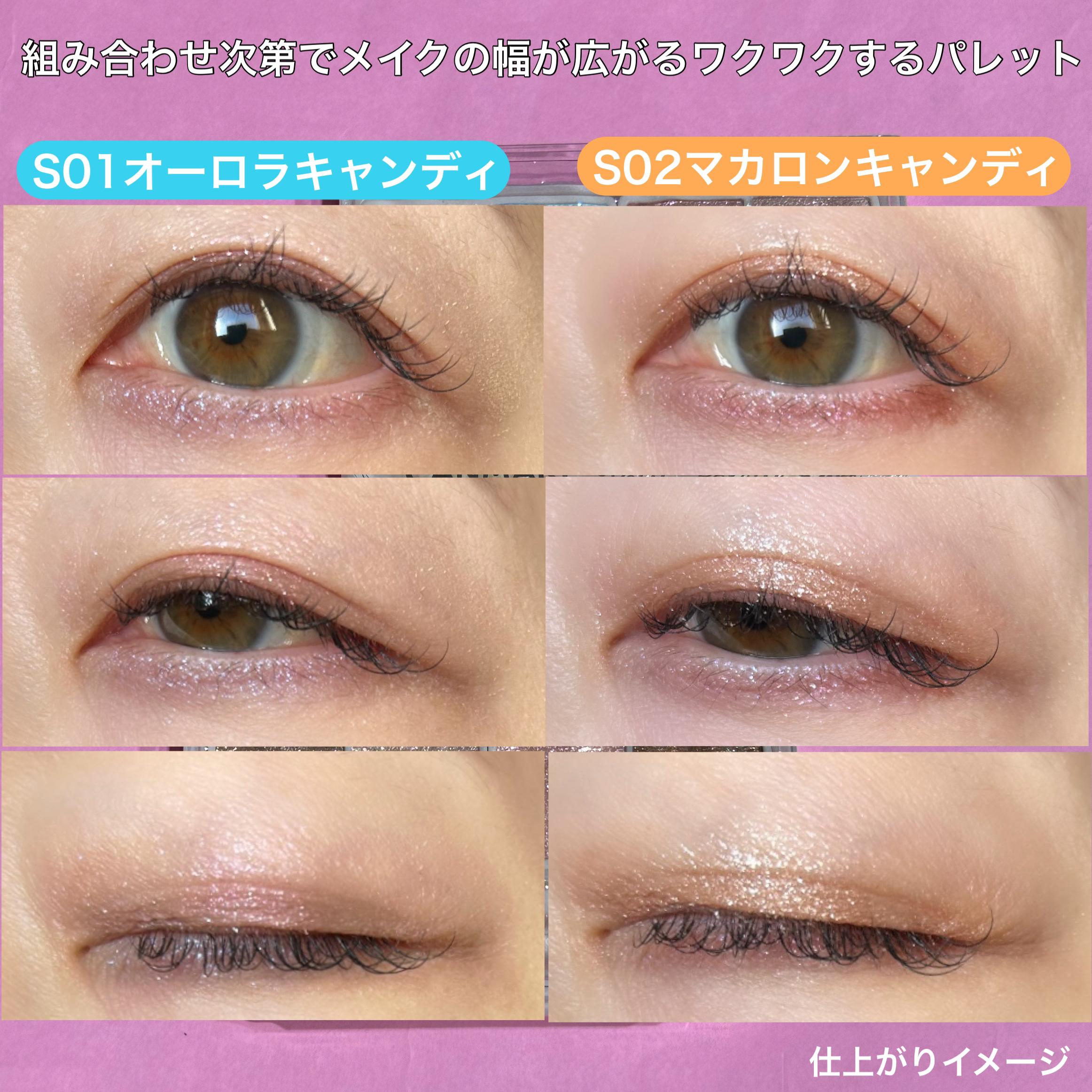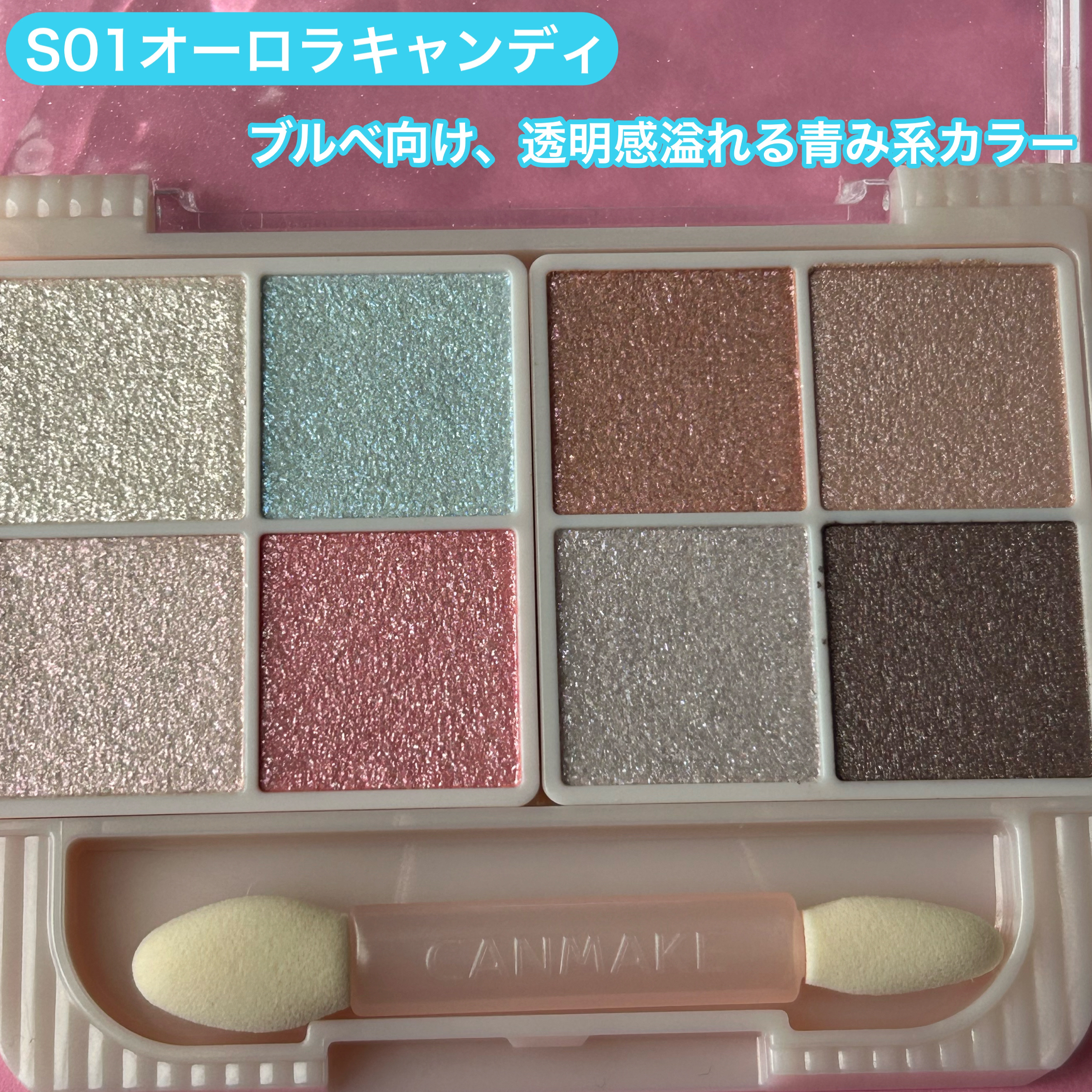 キャンメイクのプティパレットアイズからスパークリングタイプが新登場💎✨💫 このアイシャドウ全部キラキラスパークリングなんだけど、パレットの右側2色は透け感のあるベースが発色するキラキラパウダーで、色付きベースラメって感じだからアイホールに使ってみて♡ S01のオーロラキャンディは全てのカラーが透明感爆発💥💎⁺ ˖ ࣪ ✦笑 S02マカロンキャンディは透明感ありの温かみもある感じ✦こちらのほうがよく発色する‼︎