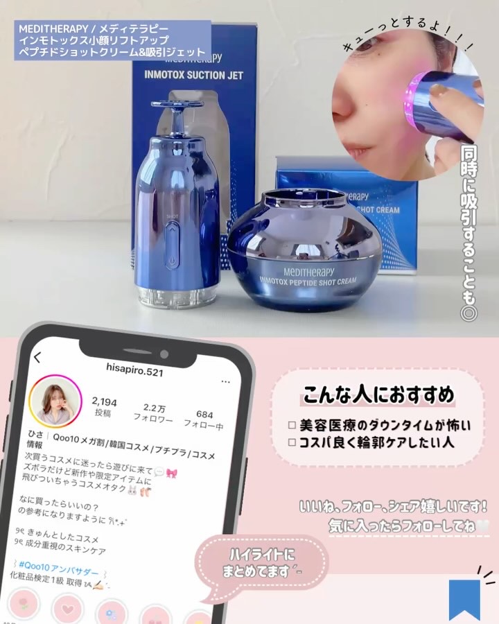 @yumi_mayama⇦他の投稿はこちら🧸♡ 韓国で最速の"フェイス用"脂肪吸引EMSとして誕生したメディテラピーの新商品@meditherapy.jpインモトックス小顔リフトアップペプチドショットクリーム&吸引ジェット♡ 赤の美顔器も...
