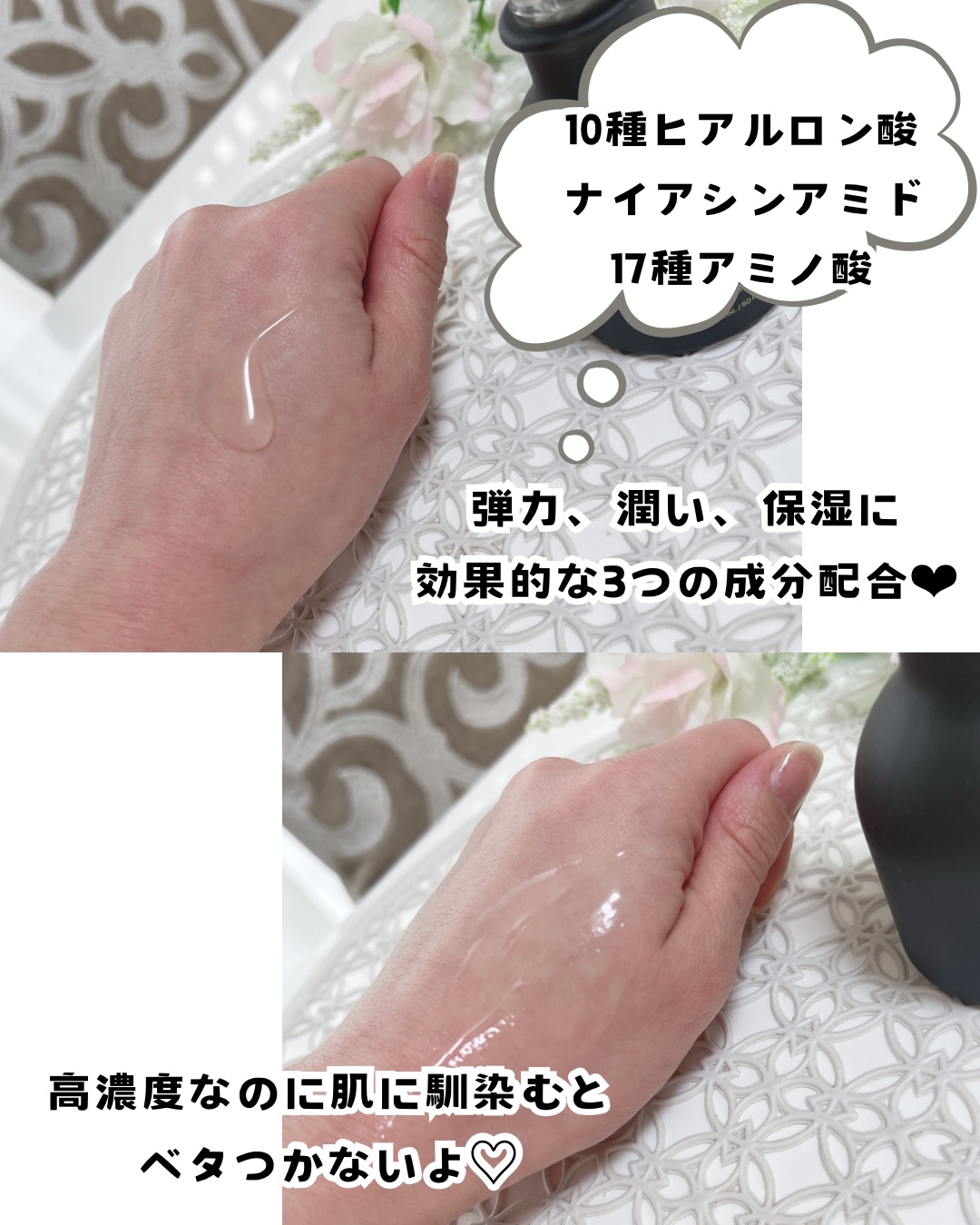 - リマージ糸リフティングアンプルはハリケアを提供する機能性アンプルです。 - 皮膚低刺激テスト試験を完了(全ての方に皮膚刺激が発生しないということではありません) - 10種類のヒアルロン酸*とナイアシンアミド*を含有し、角質層の保湿ケア - コラーゲン*とナイアシンアミド*を肌の角質層へ浸透させる - 高濃度の糸リフティングテクスチャーでベタつかず、しっとりとしたさわやかな仕上がり - 敏感肌でも使用可能 *保湿成分