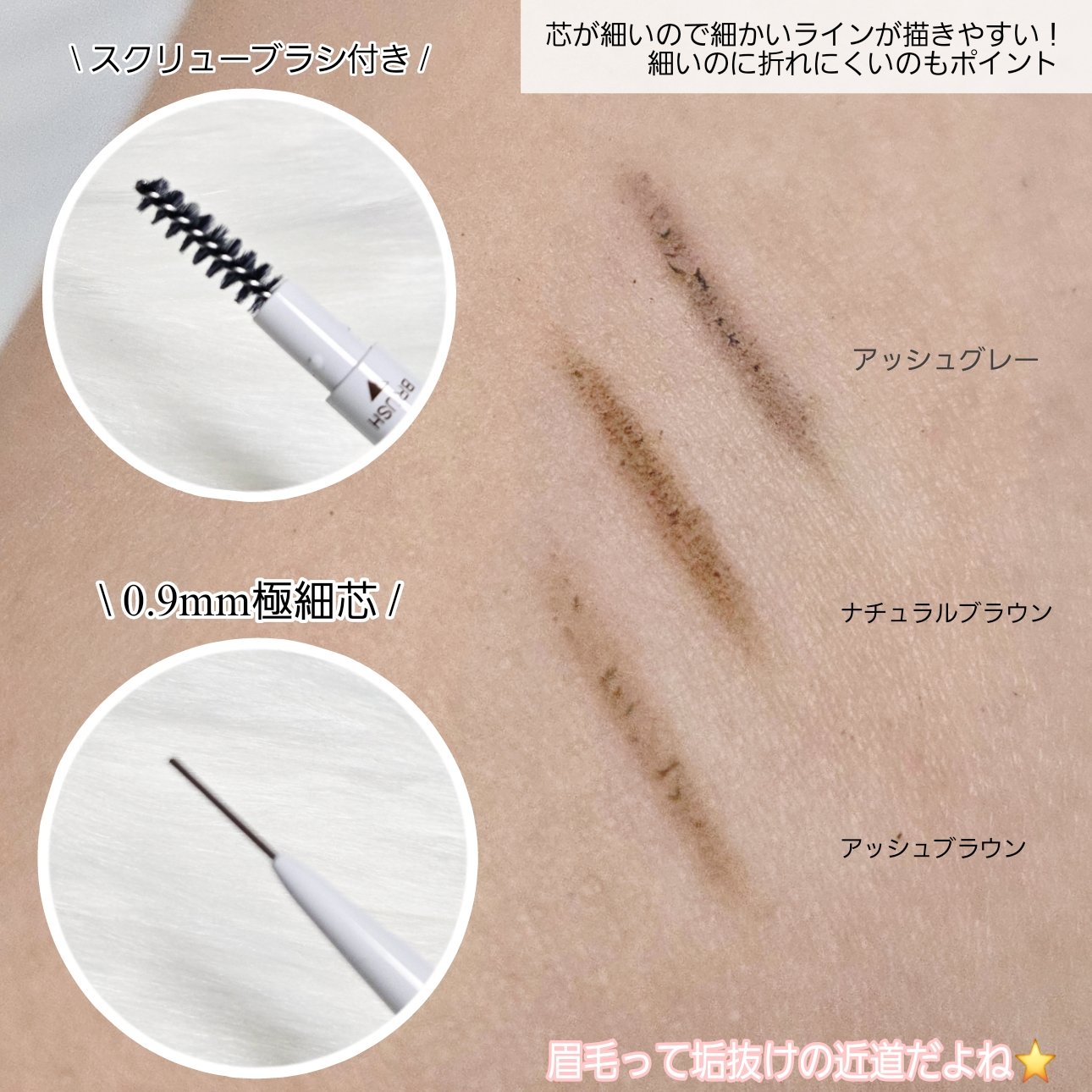 0.9mmの極細ペンシル×マイクロブラシで、眉毛を足したい部分に1本1本自眉のように描くことができる 自眉のような立体感のある眉毛を演出できます。ブラシも細めだからポイントでぼかすこともできて使い勝手がよいアイブロウ︎です😊