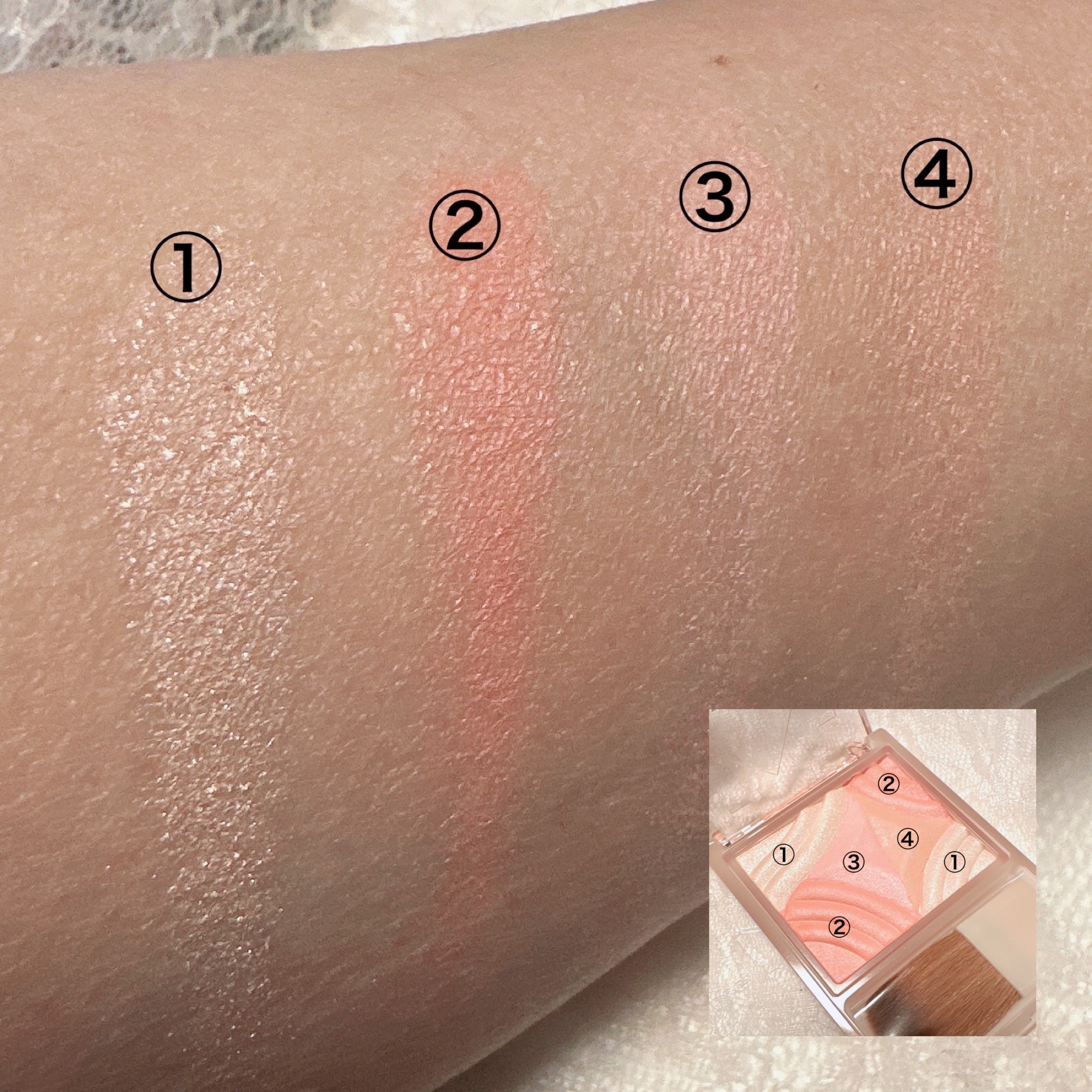 - 印象をコーディネートするグラデーションチーク。 3色のマットカラーと1色のパールカラーが1つに。混ぜ方次第で艶チークもマットチークも自由自在につくれます。 ※ブラシはよくふき取ってからご使用ください。 美容保湿成分(ヒアルロン酸Na、オリーブ果実油、バオバブ種子油)配合。 肌あたりの良い毛量たっぷりのブラシ付き
