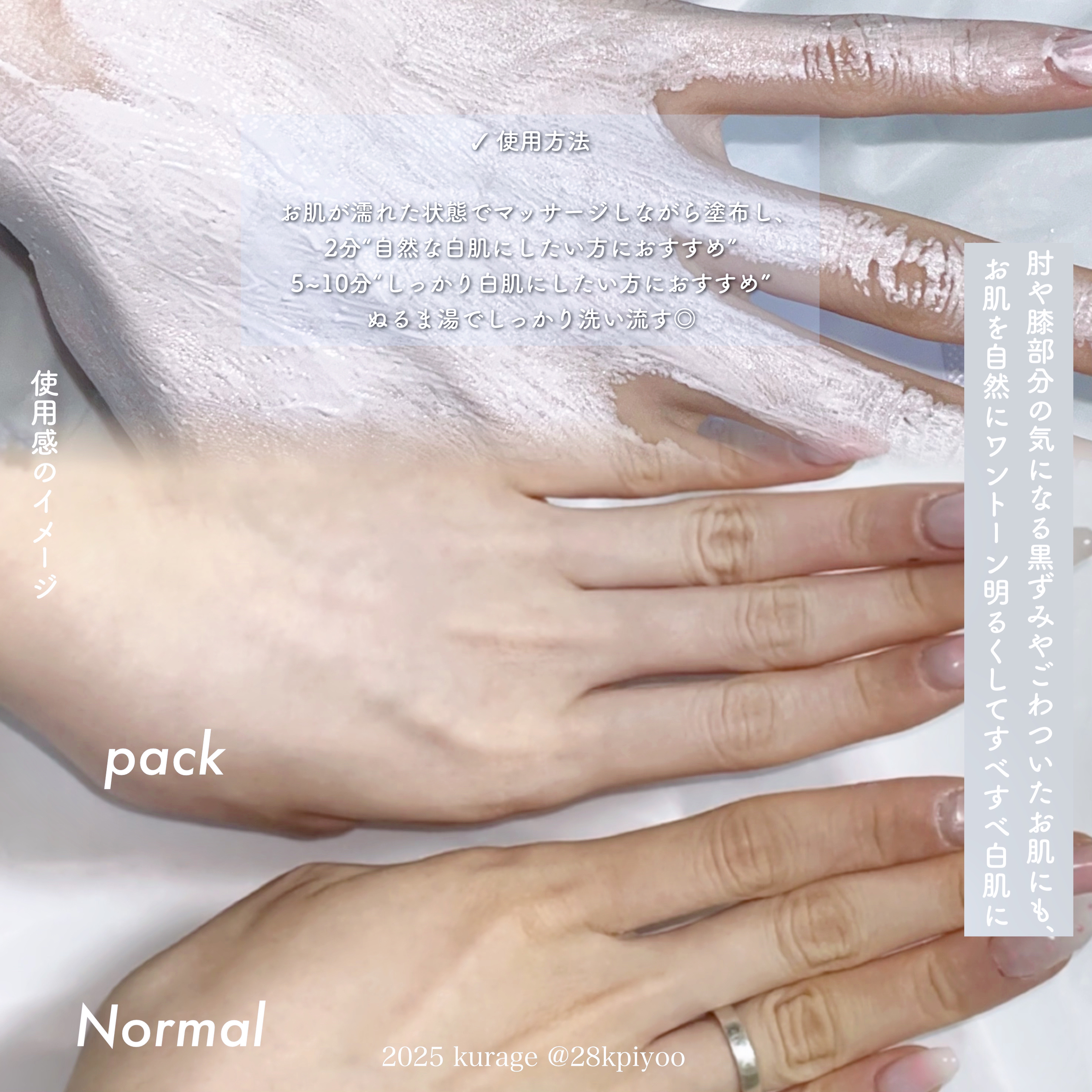 トーンアップしたい部分に塗って洗い流すだけで透明感のある白肌にしてくれる🤍 こんにゃくスクラブでくすみの原因となる角質もオフ! 好みにあわせて選べる2色展開。伸びが良く、少量でしっかり発色しました! 首元やデコルテなど部分使いがおすすめ。こちらはよりしっかりトーンアップされると感じました🫶