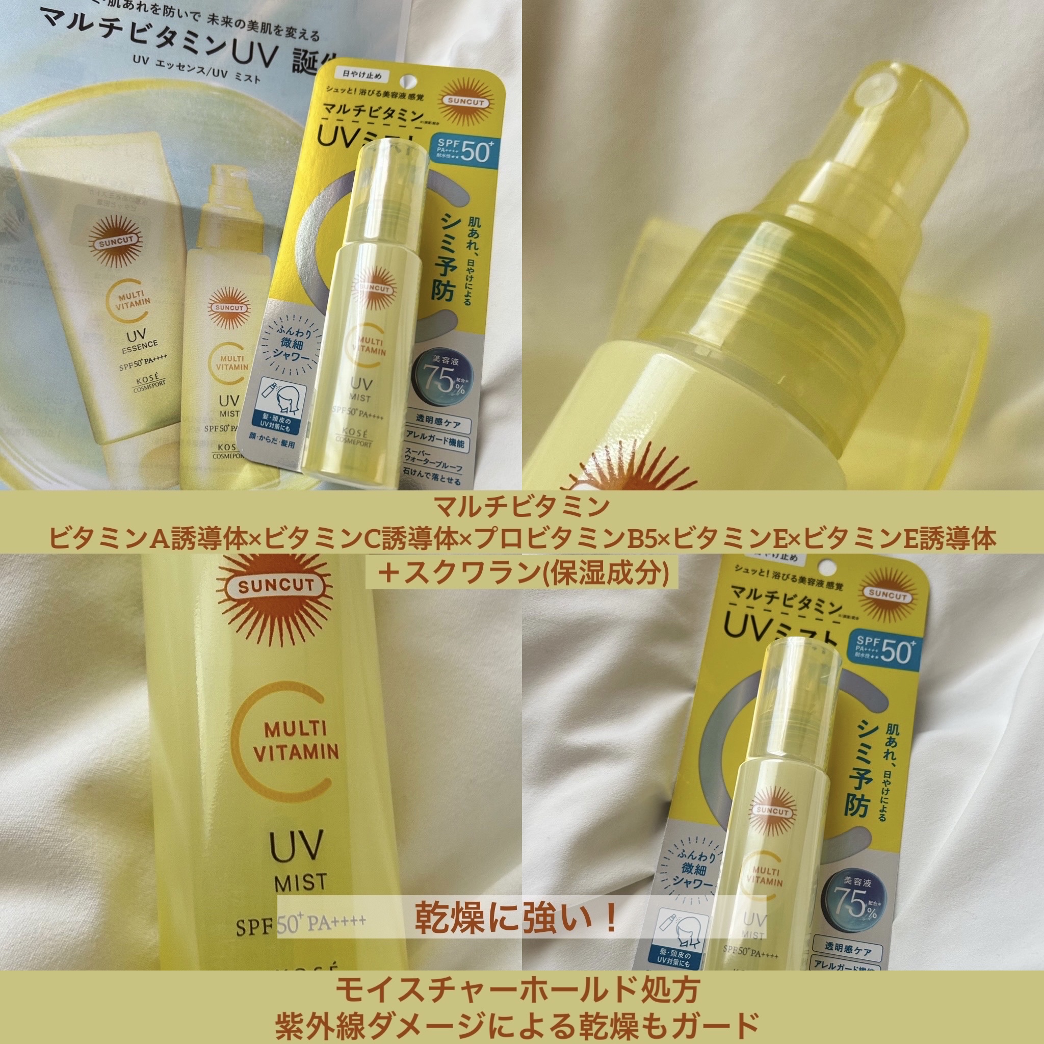 日やけによるシミと肌荒れを防ぐ☀️未来の美肌を守る高機能UV💛選べる2タイプの心地よい使用感✨〜サンカット®〜マルチビタミンUVエッセンスマルチビタミンUVミストSPF50+/PA++++スーパーウォータープルーフ石鹸オフ🆗美肌づくりに不可欠...