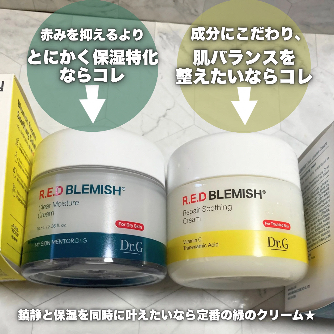 Dr.Gの人気クリーム2種比較👼🏻✨Dr.G(@drg_jp_official)様よりいただきました🙇🏻♀️🌟Dr.Gドクタージー・レッドブレミッシュクリアスージングクリーム敏感肌でも使いやすい低刺激*の水分クリーム!💫10種のCICA成分...