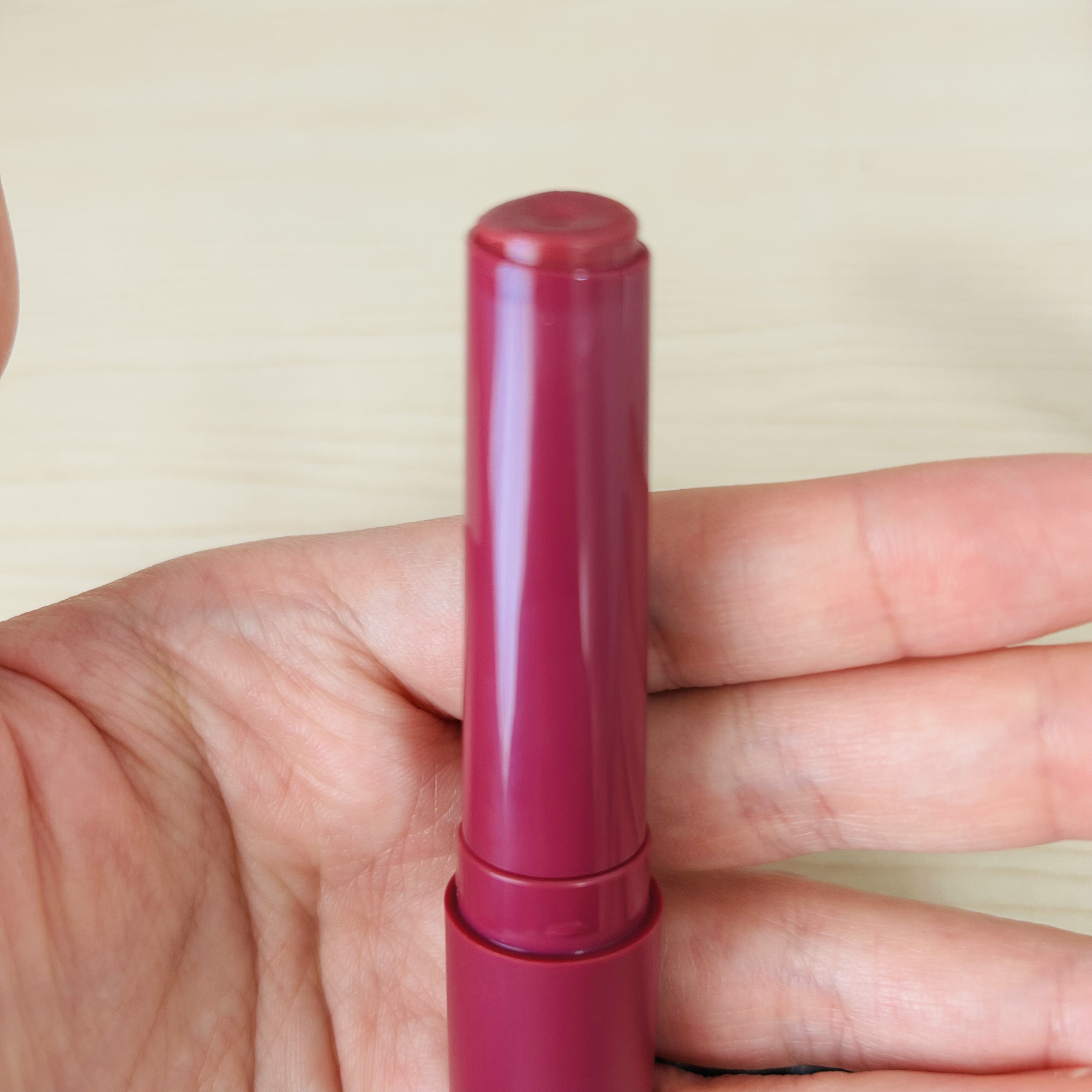チョコレートの香り付き。香りのあるコスメがあまり得意ではない私だけど、個人的にはそこまで気にならなくて〇。 こちらを塗った後、唇のしわが気にならなくなるのがすごい\(◎o◎)/! 塗った後はさらっと密着感があり落ちにくいけど、オイルで落としにくいということもなく、良かったです☆ なんともいえない、ピンクともブラウンとも言い難い絶妙なくすみカラーだと思いました!