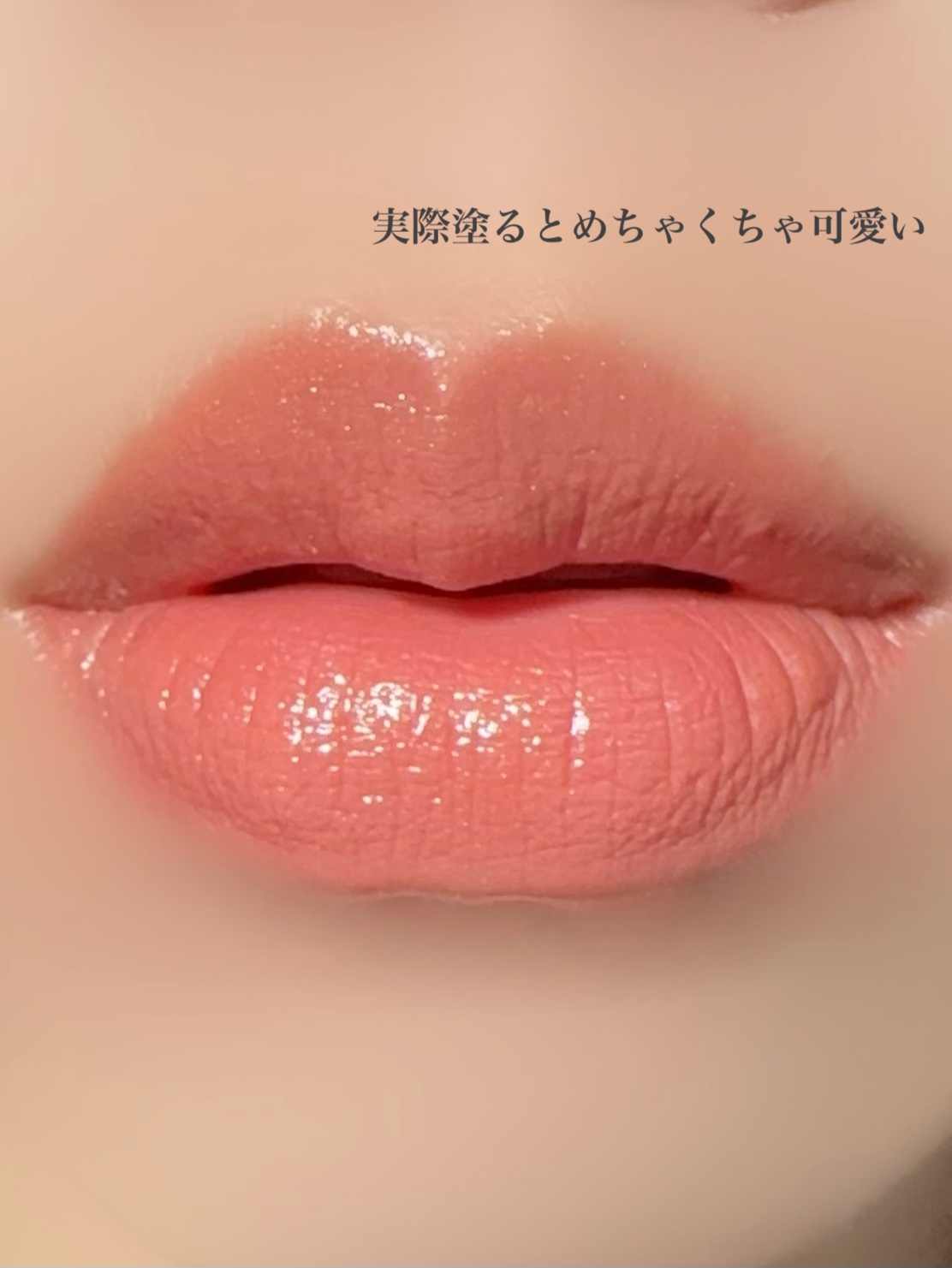 ねっちょりボリューム感あるテクスチャーだけど、ベタつきなく使いやすい。 ティントじゃない普通のグロスだから色もちは良くない。 発色ナチュラルだからこれだけでもいいけど、他のリップと合わせても可愛い!!