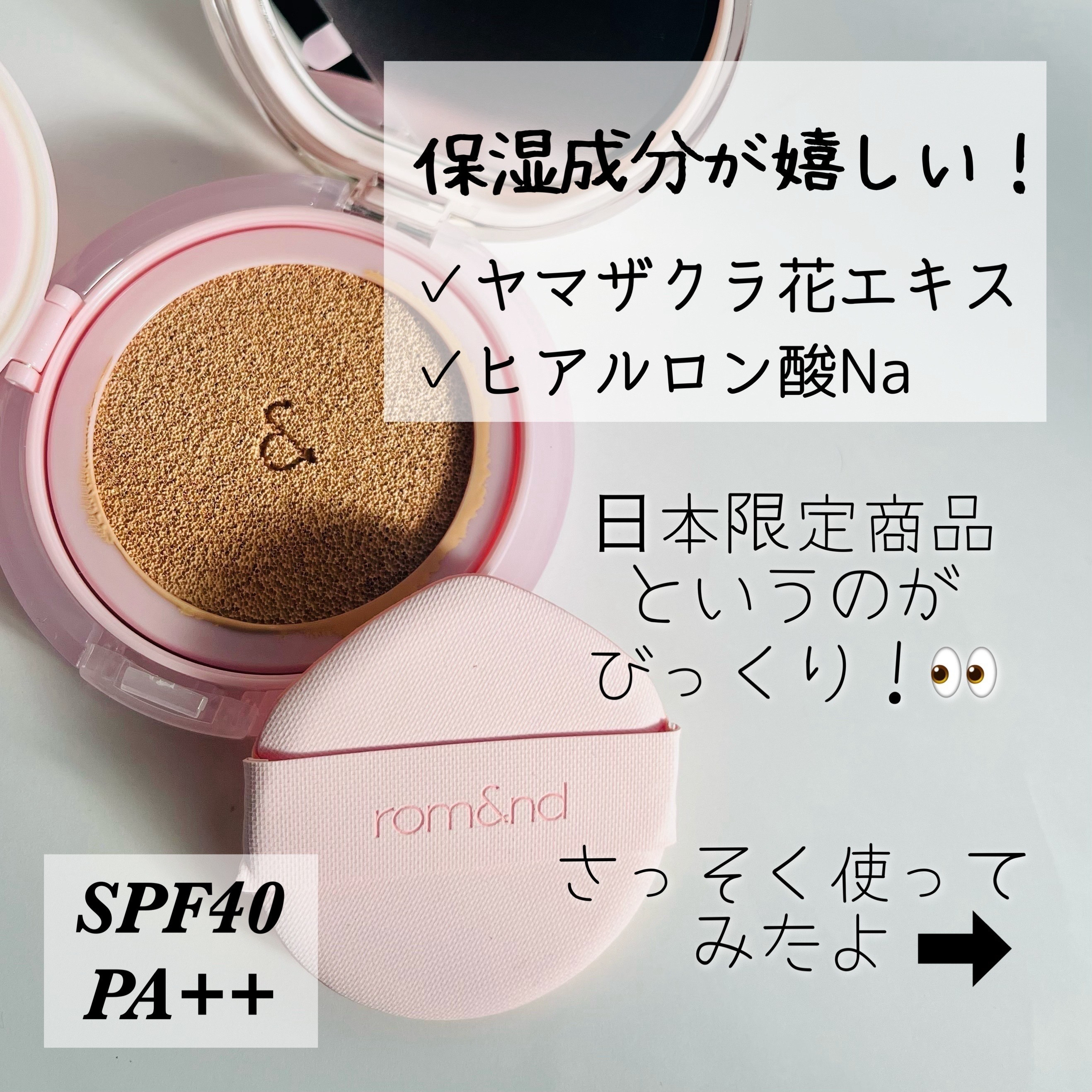 rom&nd ブルームインカバーフィットクッション #21N ナチュラル SPF40PA++ 日本限定で発売❀❀❀パケもパフも可愛い✨みずみずしいテクスチャーカバー力が高く少量でも色ムラや毛穴などをカバーしてくれます♡(ӦvӦ。)...
