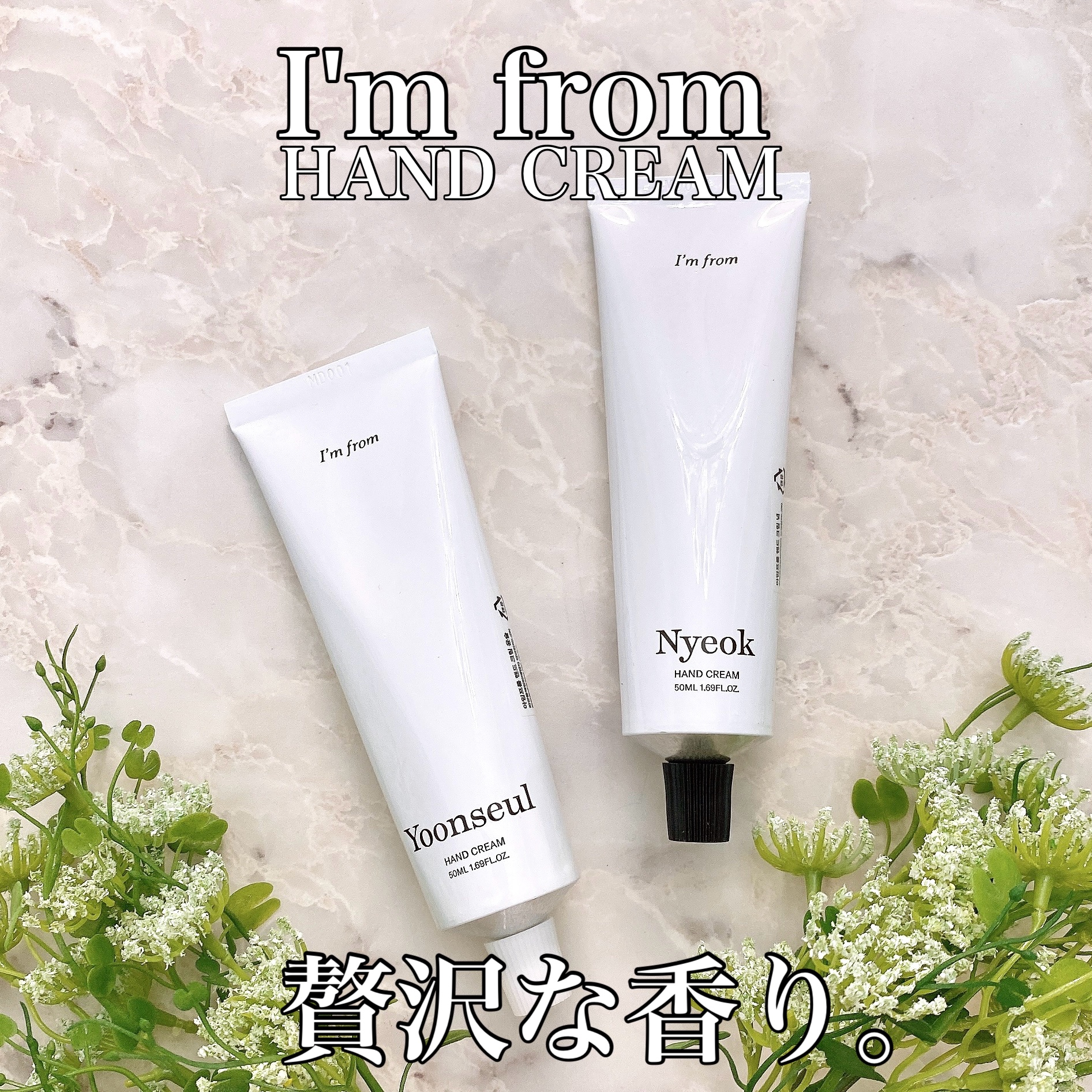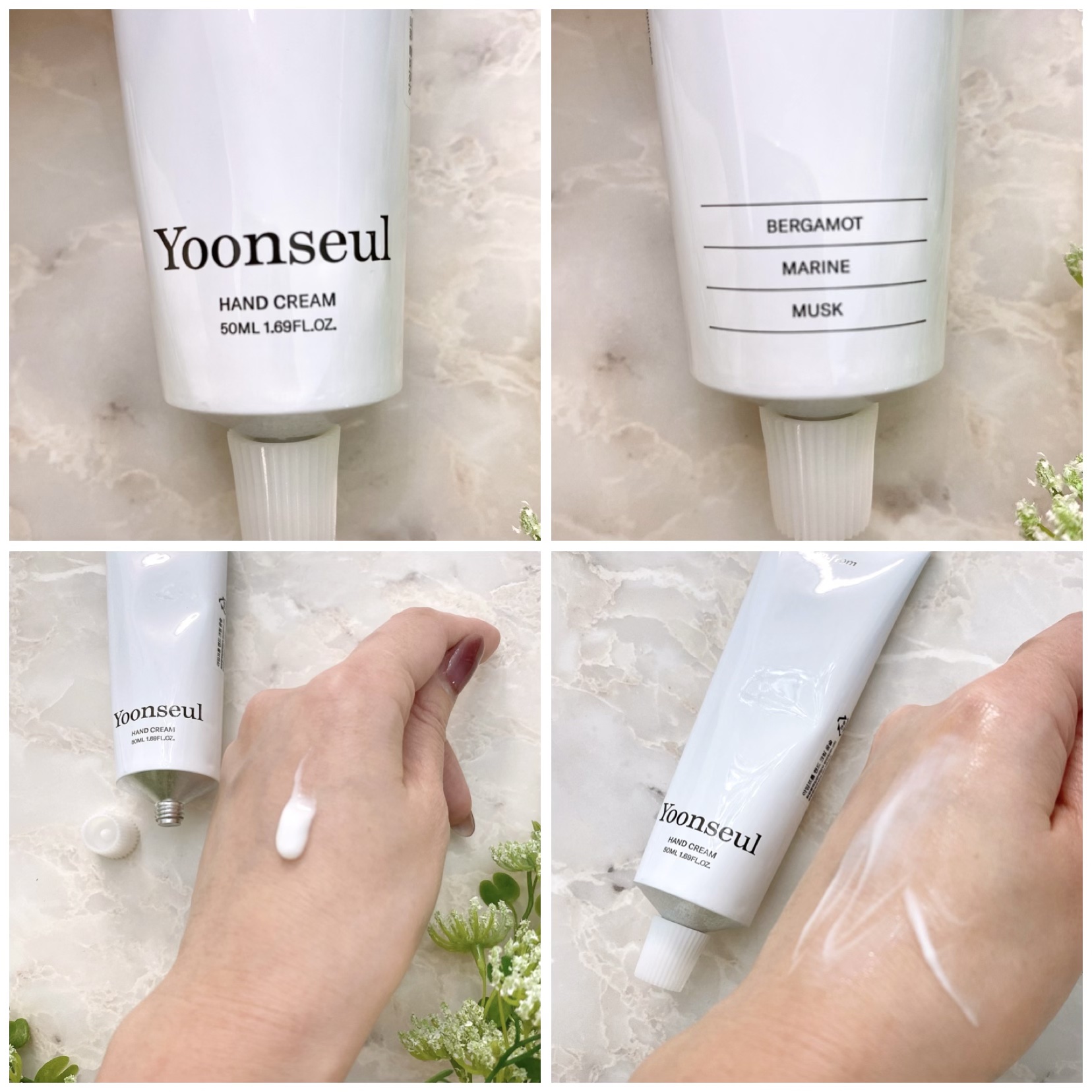 ほのかに纏う柔らかな香り🌿 アイムフロムのハンドクリーム🕊️ シンプルなアルミのホワイトチューブ。 べたつかずしっとり保湿。すっきりした浸透力でどちらかというと軽めの使用感。 今回使ったYoonseul(ユンスル)は甘さのない上品な香り。シトラス系ベルガモットに清涼感のあるマリンが加わり、軽快で涼しい水の香りを表現。