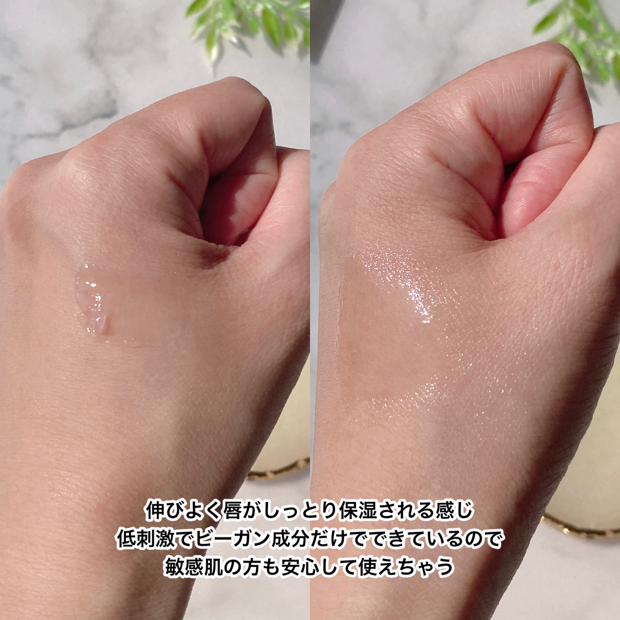 唇の表面は植物性オイル保護膜を形成し、水分蒸発を防ぎ、唇の内部は8種のヒアルロン酸で水分を供給してくれるそう しっとりツヤツヤになります 香りがないので使いやすいです