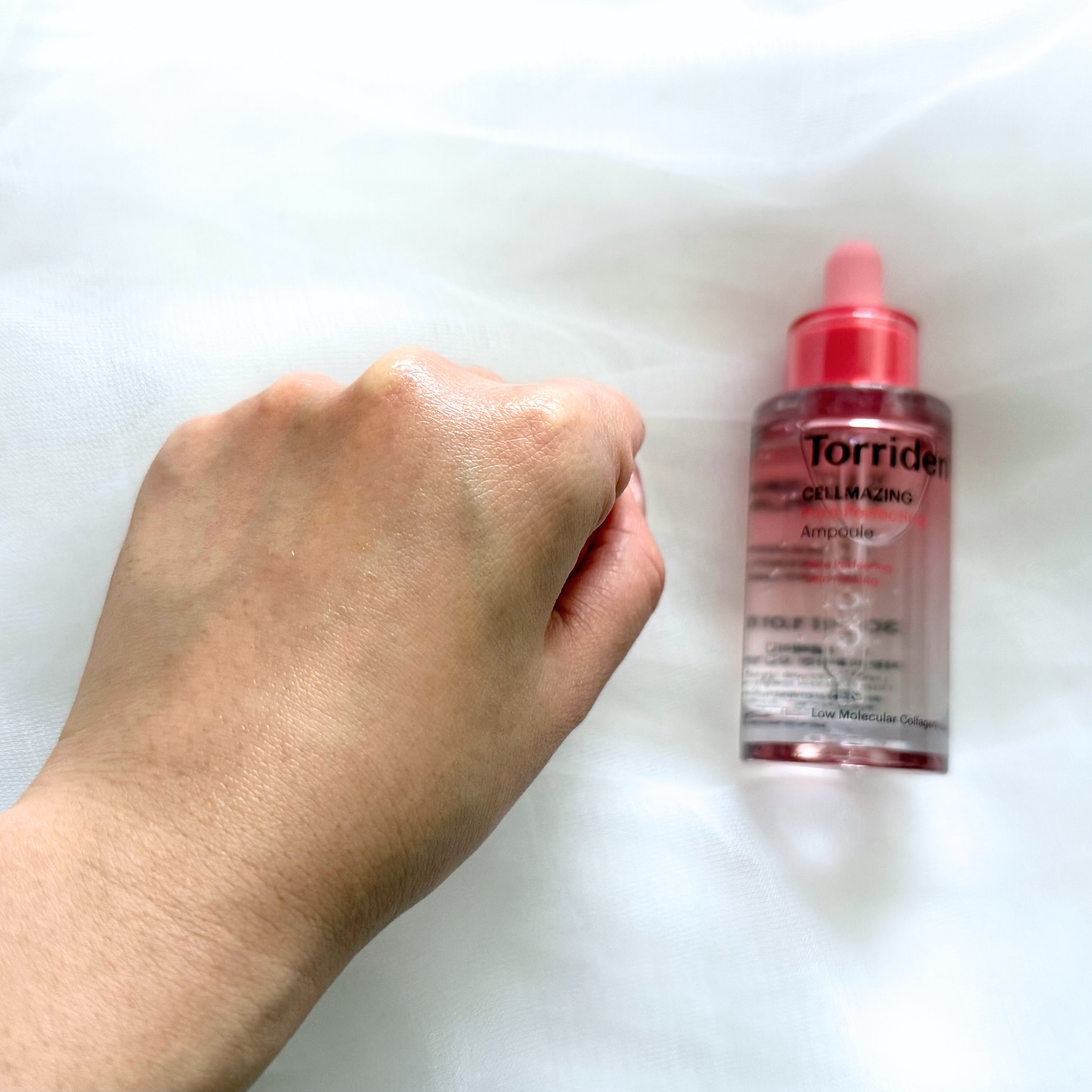 みんなが大好きTorridenからピンクトリデンが日本に上陸しました…🥹!!!ようこそ!!🥹 クリアなアンプルは少しもっちりとしているテクスチャー! 伸びも良く馴染みも早かった🫶 水分保湿、ハリ・弾力のスペシャルケアが可能だよ⋆✦ 上下が分かれていてはりやすく、高密着!!
