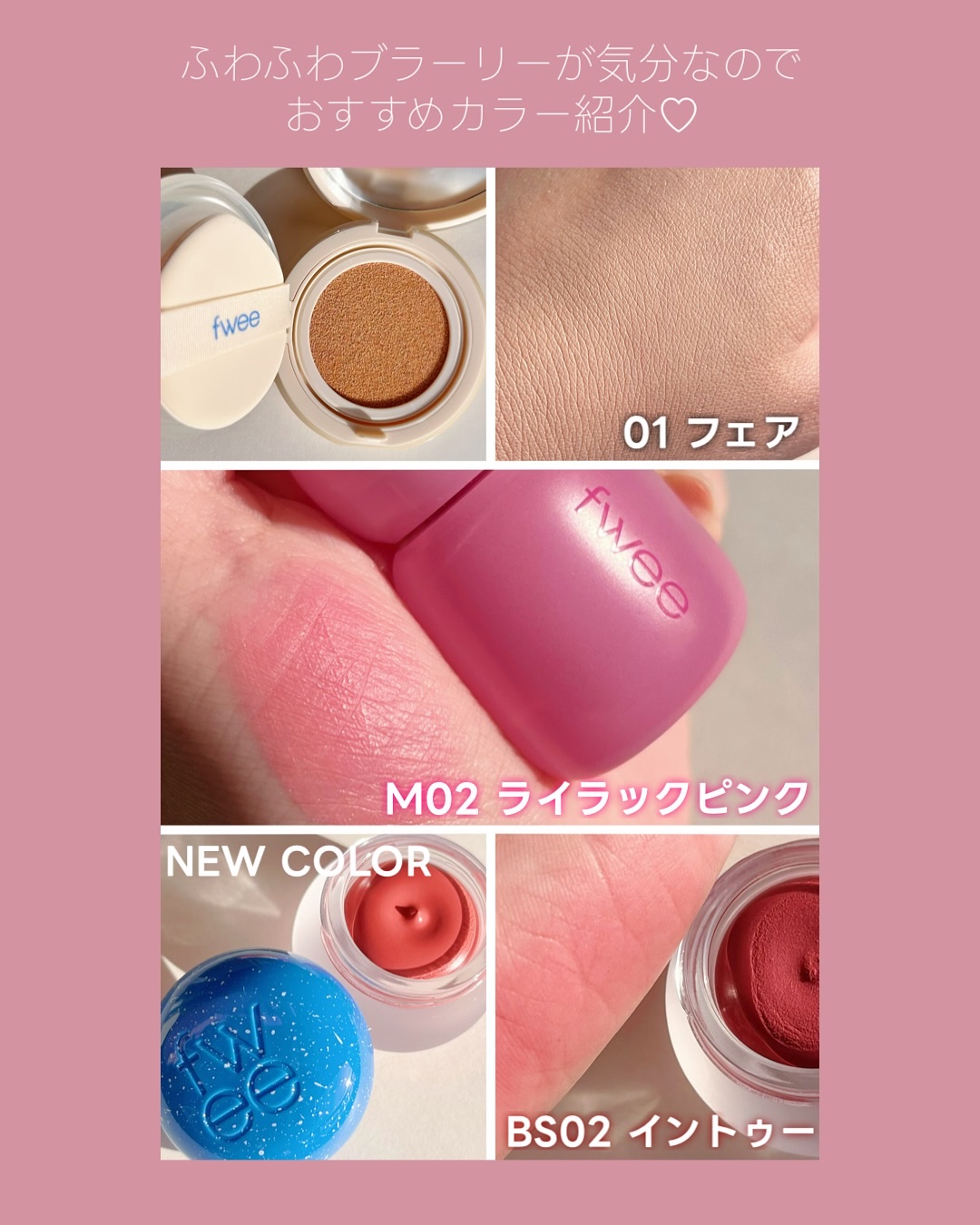 fwee8月末にベストセレクトセットが再登場🩵前回構成に組まれていなかったクッションガラスオリジナルと新作のボリューミングティントも選択出来るようになったよ💗ブルベ向きカラー中心に手持ちのカラーも合わせてスウォッチしているので参考になれば嬉し...