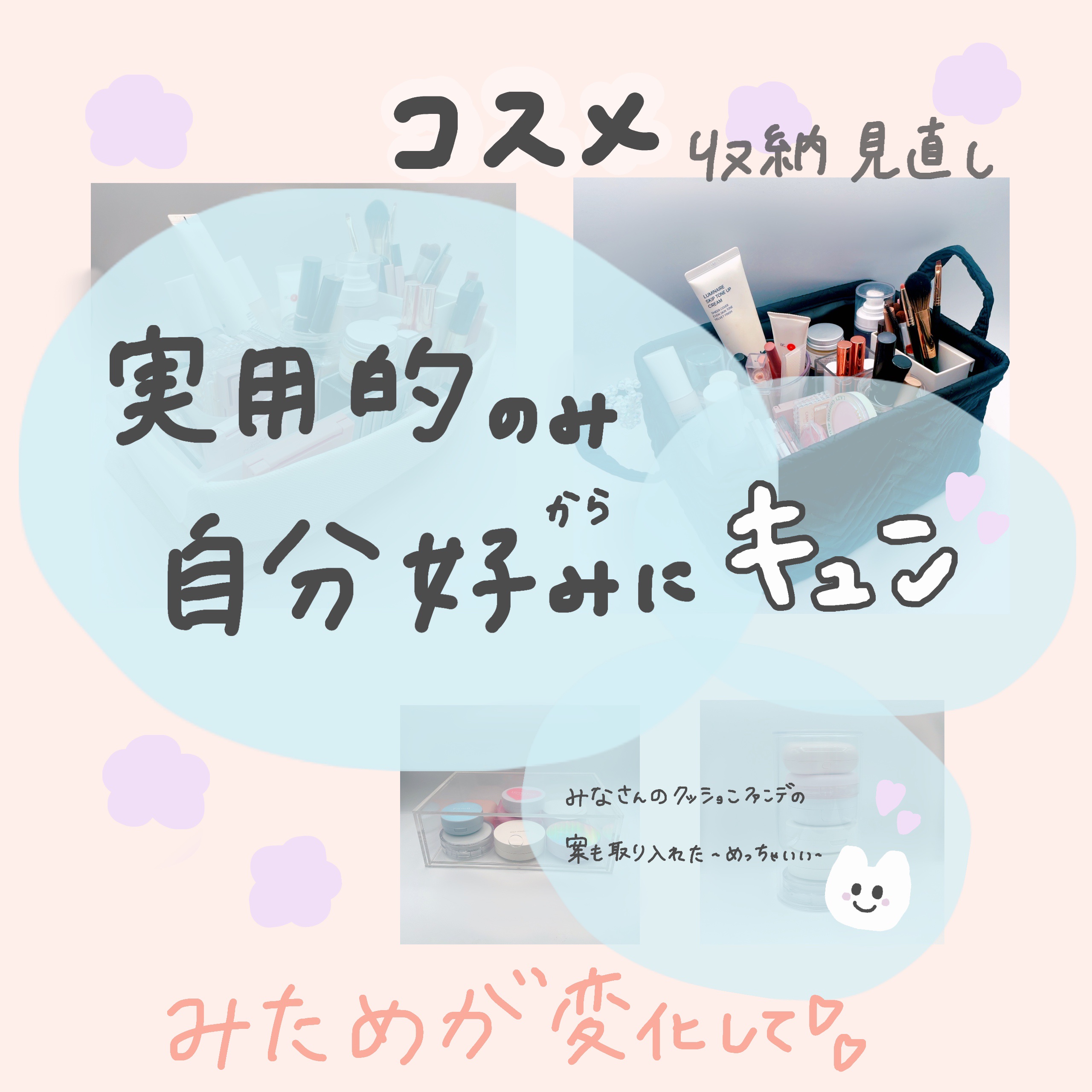 元々フィギュアなどの見せる収納にというアイテムなのですがこれがクッションファンデにピッタリ! クッションファンデって縦にせずに平置きしたいからスッキリと積み重ねられるのがGood👍 これはすっきりと見せる収納ができるので本当に買ってよかったです!