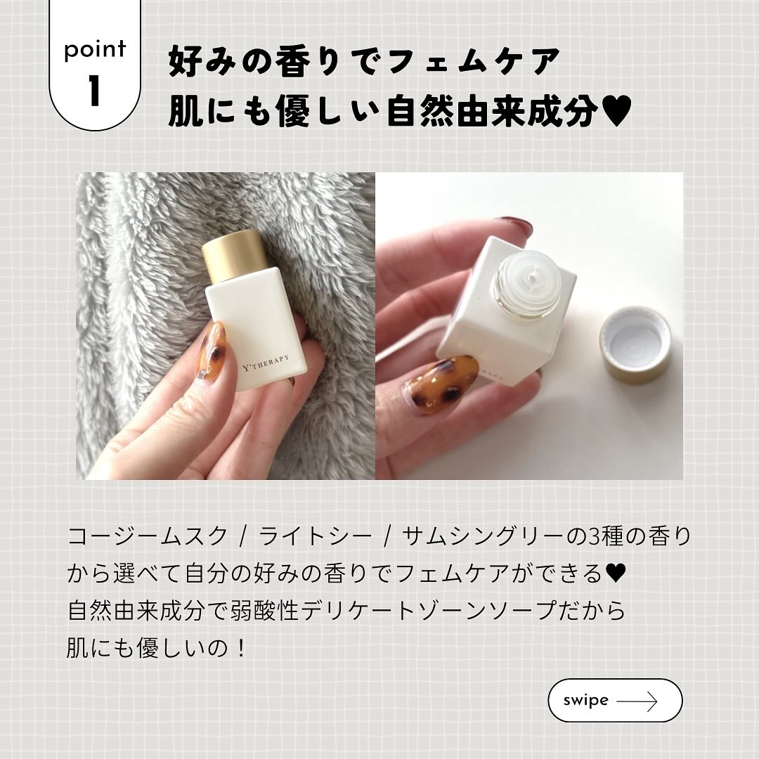 Y'THERAPYは韓国の女性フェムケア専門ブランドで、大切な部分のより安全で簡単なケアをサポートしてくれます🕊️ 1滴でしっかりと香るのが頼もしいインナーパフューム◎ 小瓶で重くないので持ち運びにも便利です🤍 デリケートゾーンへの刺激になりません◎ 香水として使用しても1滴で結構香りが長続きしてくれるのでびっくりしました🌼