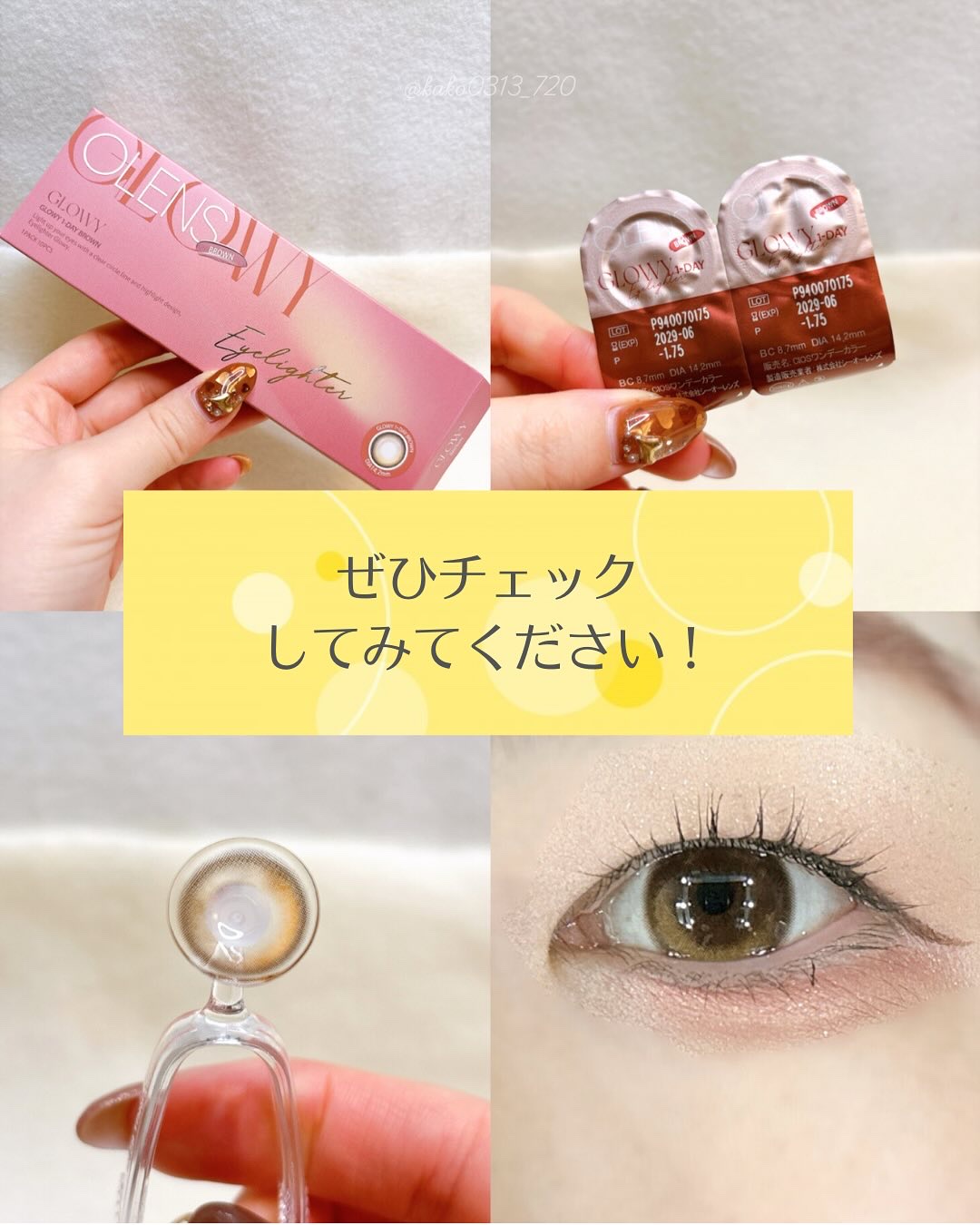 - 韓国カラコン業界の話題のブランド『OLENS(オーレンズ)』の日本正式承認商品シリーズ。世界中から注目を浴びるグループ「NewJeans (ニュージーンズ)」がイメージモデル。 日本でも定番のシリーズ『Glowy』から、瞳にツヤ感を与えるオリーブカラーが登場。 ほんのりで繊細なハイライターカラーで、立体的に輝く瞳を演出する瞳にツヤを出す水光レンズ。ソフトなカラーで優しいちゅるんとした瞳に。 瞳になじむ黄金色のグラデーションが、まるで内側から輝くような立体的な瞳を演出します。 ■使い方 コンタクトレンズは高度管理医療機器です。必ず眼科医の処方に従って購入してください。 ■使用上の留意事項 コンタクトレンズは高度管理医療機器です。眼科医の指導に従い装用期間を厳守し、正しくお使いください。眼の定期検査を必ず受けてください。添付文書を必ず読み、取扱方法、装用時間を守って正しくお使いください。少しでも異常を感じたら、直ちに眼科医の検査を受けてください。