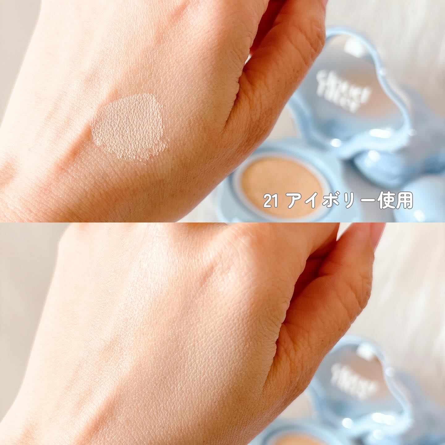 うぶ肌を演出してくれる、パッケージも可愛いクラウドフィルタークッション💕 数々のTOPアイドルのメイクを担当している「Kitts」との共同開発によって誕生した新作ファンデーションなんだって👀 ブルーパウダー*を配合しているから透き通るような*²肌を演出してくれるよ🫶