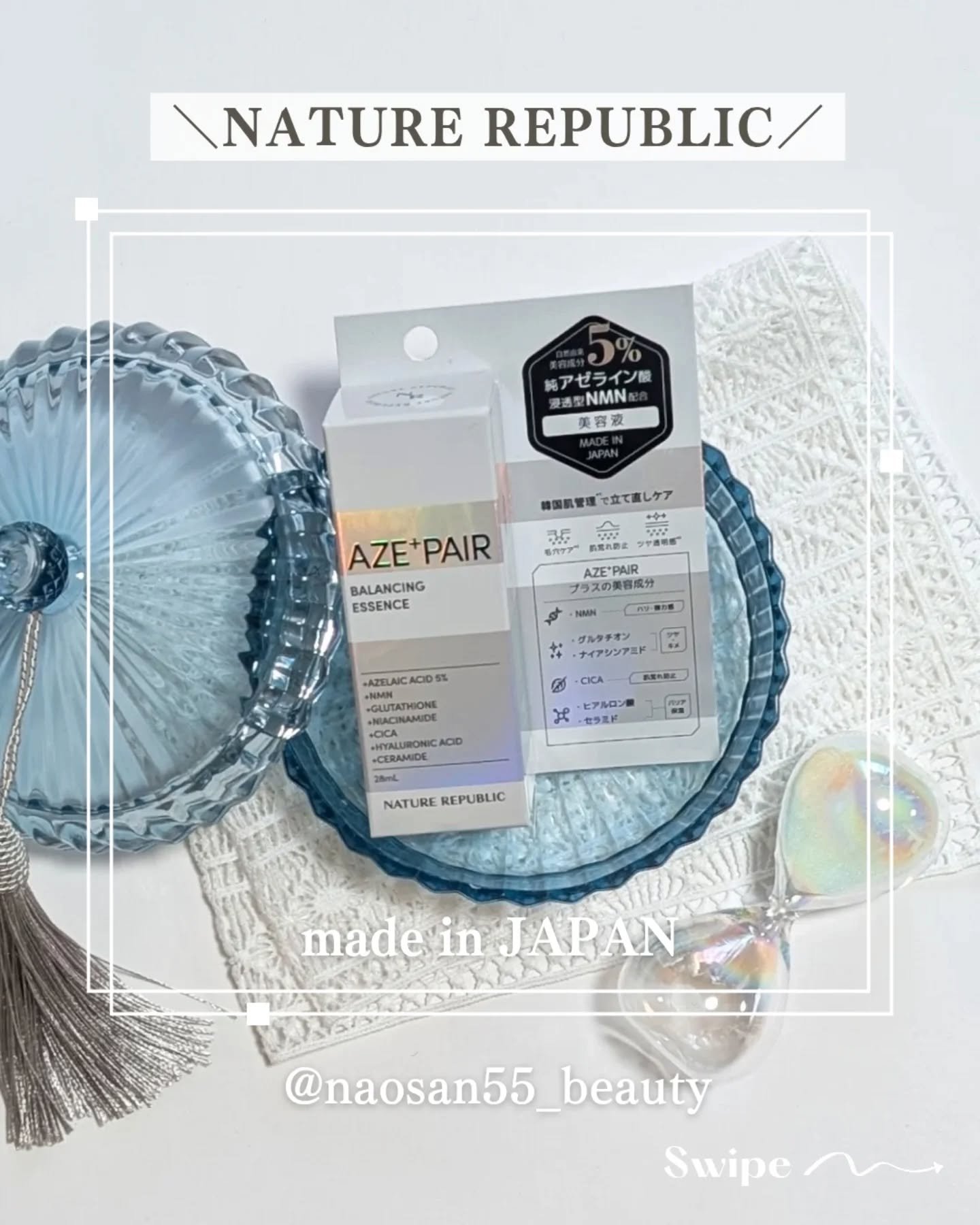 アゼペアは、高純度のアゼライン酸*¹5%+美容成分が贅沢に配合されているので、1本でマルチケアしたい方におすすめ! 乳液のようなとろみのあるテクスチャーで、しっとり保湿が高いのにベタつき感がない使用感◎ 優しい使用感なので、アゼライン酸高配合な製品では刺激を感じやすい方、乾燥肌の方にもおすすめです。