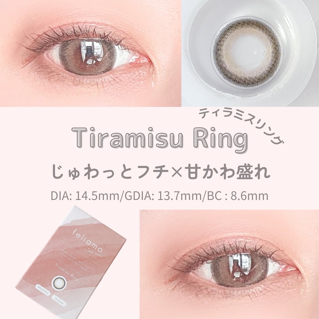 - ※2025年6月以降、商品パッケージ裏面・側面の一部表記を順次変更いたします。尚、これにかかる商品の交換・返品は承っておりません。 どんな瞬間にも溶け込む誰からも愛される瞳へ feliamoの由来は felice amore~幸せな愛~ 瞳から愛されオーラを放つ好印象レンズで女性らしさと品を演出。 オンも、オフも、特別な日も。 どんな場面にも溶け込むレンズラインナップで誰からも愛される瞳に。 ■うるつや透明感 × こっそり盛れ ナチュラルレンズ Coffee Jelly(コーヒーゼリー) ■じゅわっと透明感 × ふんわり盛れ すこし大きめレンズ Affogato(アフォガード) ■ナチュラル細フチ×裸眼盛れ トキメキうるみレンズ Oolong Tea(ウーロンティー) ■トレンド太フチ×くりっと盛れ 無敵ブラウンレンズ Tarte Tatin(タルトタタン) ■じゅわっとフチ×甘かわ盛れ あざとブラウンレンズ Tiramisu Ring(ティラミスリング) ■シュガーパール 大人気カラーBrulee Pearl(ブリュレパール)の色違いグレーレンズ! 細フチの使いやすいグレーで、どんな瞳の色(黒目・茶目)でもナチュラルに光をとりこみ、うるっと奥行きのあるこなれ可愛い印象に。 おでかけにぴったりなレンズです! 清楚な瞳になれるヒ・ミ・ツは・・・? ちゅるん細フチ×うるキラグレーカラー! ■メルティバター 盛れるのにバレにくい、毎日使えるナチュラルブラウンレンズ! じゅわっととろけるようなブラウンで、ふんわりやさしげな瞳に! どんなメイクにも似合うから毎日使える!自然に盛れる大きめブラウンレンズはfeliamoにお任せ♡ 多幸感のある印象の瞳のヒ・ミ・ツは・・・? ぼかしナチュラルブラウン×じゅんわりとろけるブラウンカラー カラーコンタクトレンズの不適正使用による眼障害の危険性等などがあります。 ●コンタクトレンズは高度管理医療機器です。不十分な洗浄・消毒など不適切なケアや、長時間・交換期間を超えた装用により、アレルギー性結膜炎、角膜感染症、角膜潰瘍等の重篤な眼障害が発生する危険性があります ●ご使用前に取扱説明書を確認してください 使用上の留意事項 ●眼科医院等を受診してからお求めください ●眼に異常を感じたら直ちにレンズ使用を中止し、お近くの眼科等で診察を受けてください ●医師の指示にしたがってご使用ください ●コンタクトレンズを装用する場合、自覚症状がなくても、眼科医院等での定期検査を受けてください ●レンズに不具合がある場合は使用しないでください