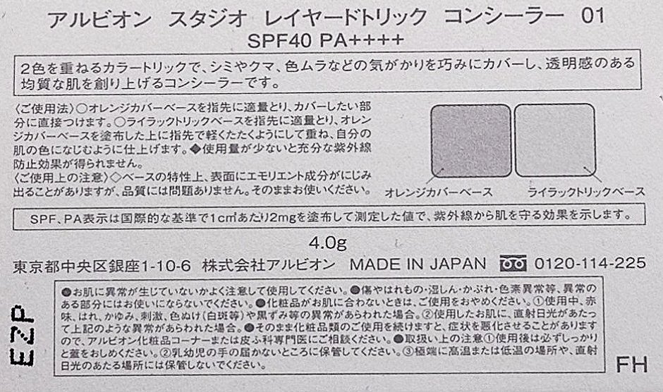 商品詳細情報ALBION アルビオン スタジオ レイヤードトリック コンシーラー