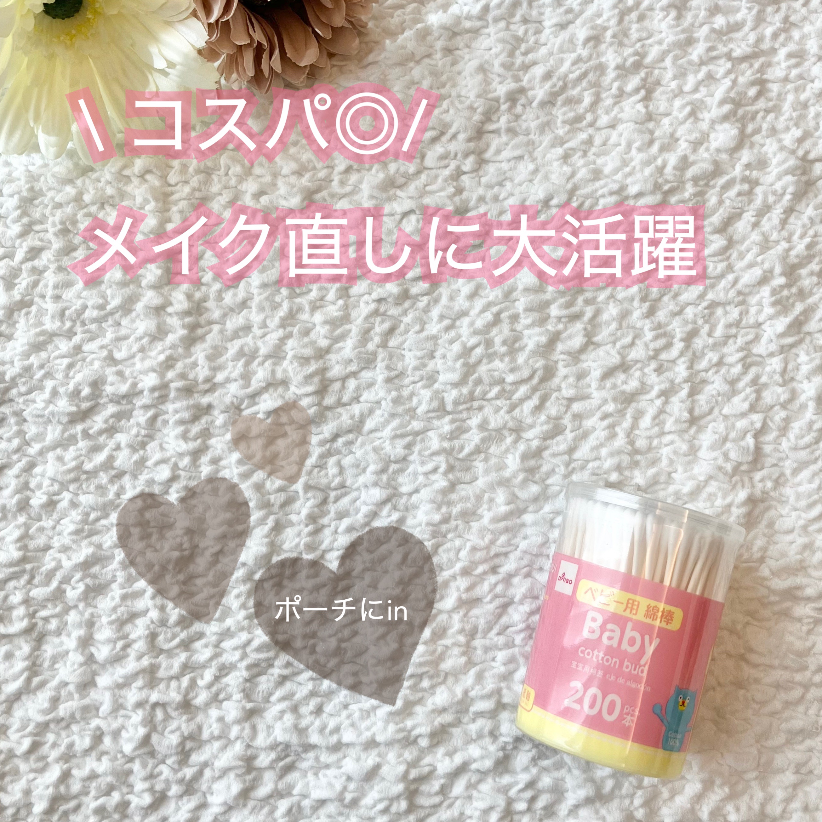 ダイソー ベビー用綿棒200本ダイソーのベビー用綿棒、愛用している。。。ベビー用綿棒が便利なのよ(^-^)赤ちゃん用で細い綿棒・極細サイズということで普通の綿棒と比べると、細いタイプ。それに、プチプラ、110円で200本入りだよ。赤ちゃんのお...