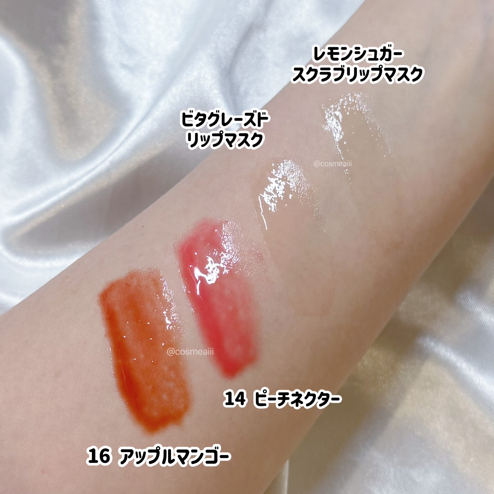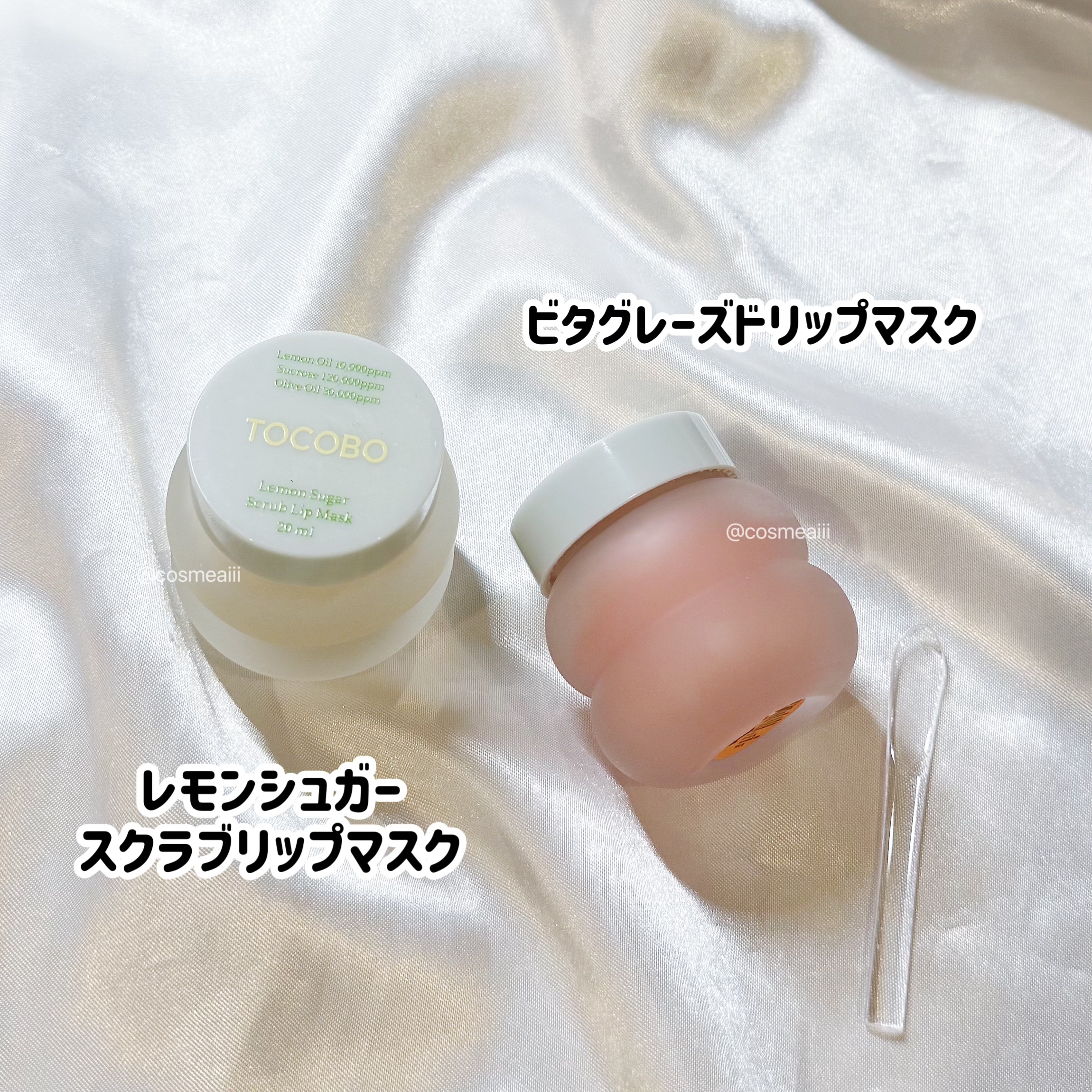 TOCOBOさんのリップ、ぷるんとした厚膜が可愛いから大好きなんだけど、ケアアイテムもいいね!?と思った話🥺🩷 ビタグレーズドリップマスクはグレープフルーツの香り、とのことだけどヨーグルトっぽい香りがした✨ケアが楽しくなる香りとも言える🥺 ジューシーベリープランピングリップオイルの14 ピーチネクターと16 アップルマンゴーは日本限定色👏どちらも透け感のあるカラーだからPC問わずに使えそう🥺