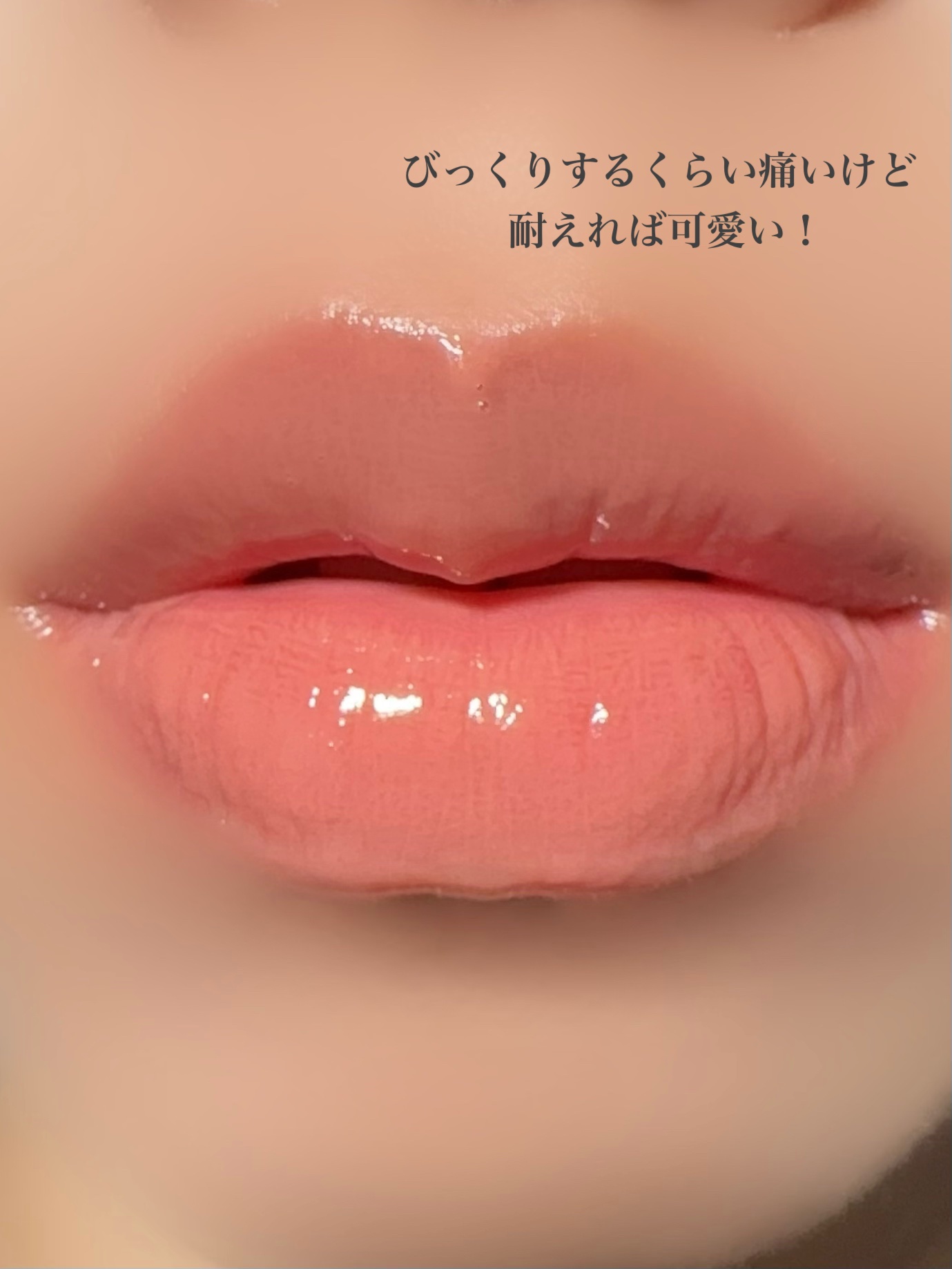 ねっちょりボリューム感あるテクスチャーだけど、ベタつきなく使いやすい。 ティントじゃない普通のグロスだから色もちは良くない。 発色ナチュラルだからこれだけでもいいけど、他のリップと合わせても可愛い!!