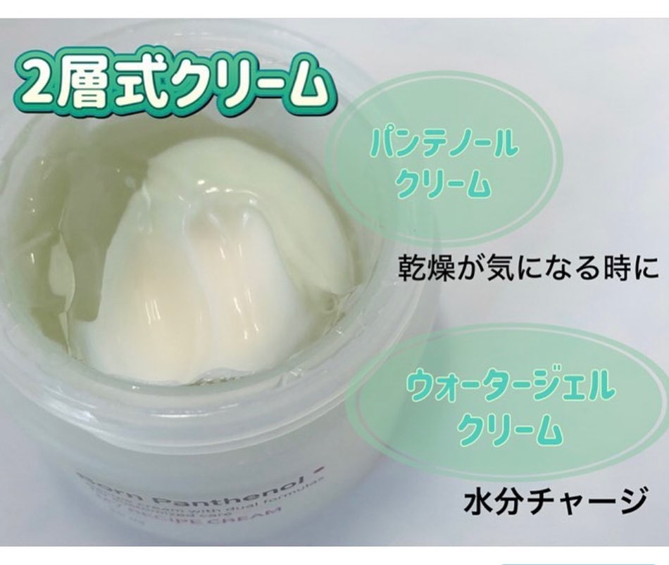 肌の状態に合わせてウォータージェル&パンテノールクリーム2種類のクリームをミックスしてカスタマイズケアができるクリーム 2種類のクリームがお肌の潤い・栄養・活力まで!もっちりハリのある素肌を叶える✨️ 外側のジェルも真ん中のクリームもみずみずしいテクスチャー
