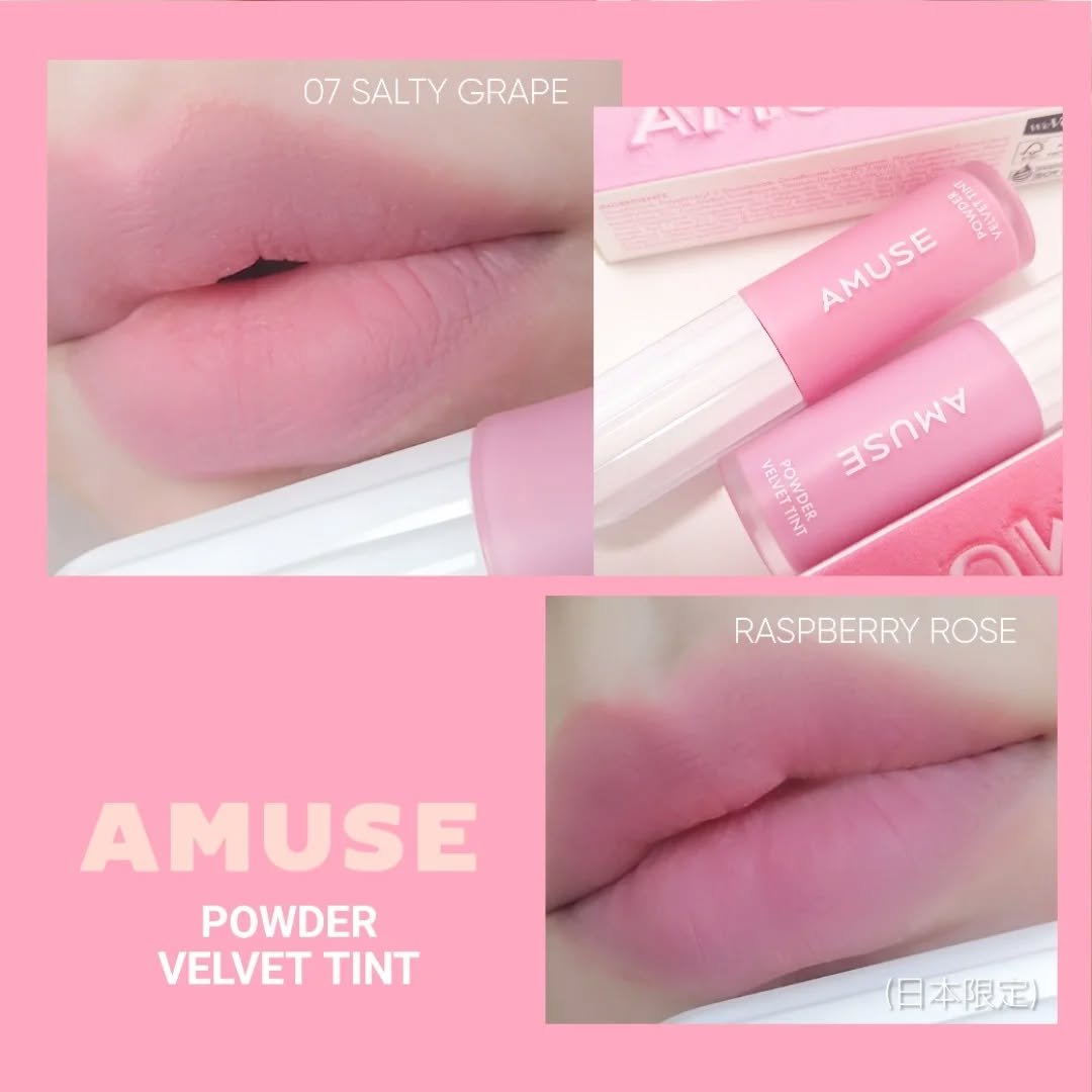 塗った瞬間、厚みのあるプランピング⁈ ティントが人気のアミューズで初めて、綺麗に長時間長持ちするリアルつや消しパウダーブラーリップが誕生🙌🏻💗 ͗ ͗ 超軽量パウダー配合で、重くならない!唇の縦じわや角質浮きの心配がいらないリップは、密着力が高くて、ベタつきが気にならない🤍🫧 ラズベリーローズはロージーモーヴカラーで、ブルベさんにおすすめのカラー。レアピーチはなめらかなモモの産毛みたいな、ソフトピーチカラー。