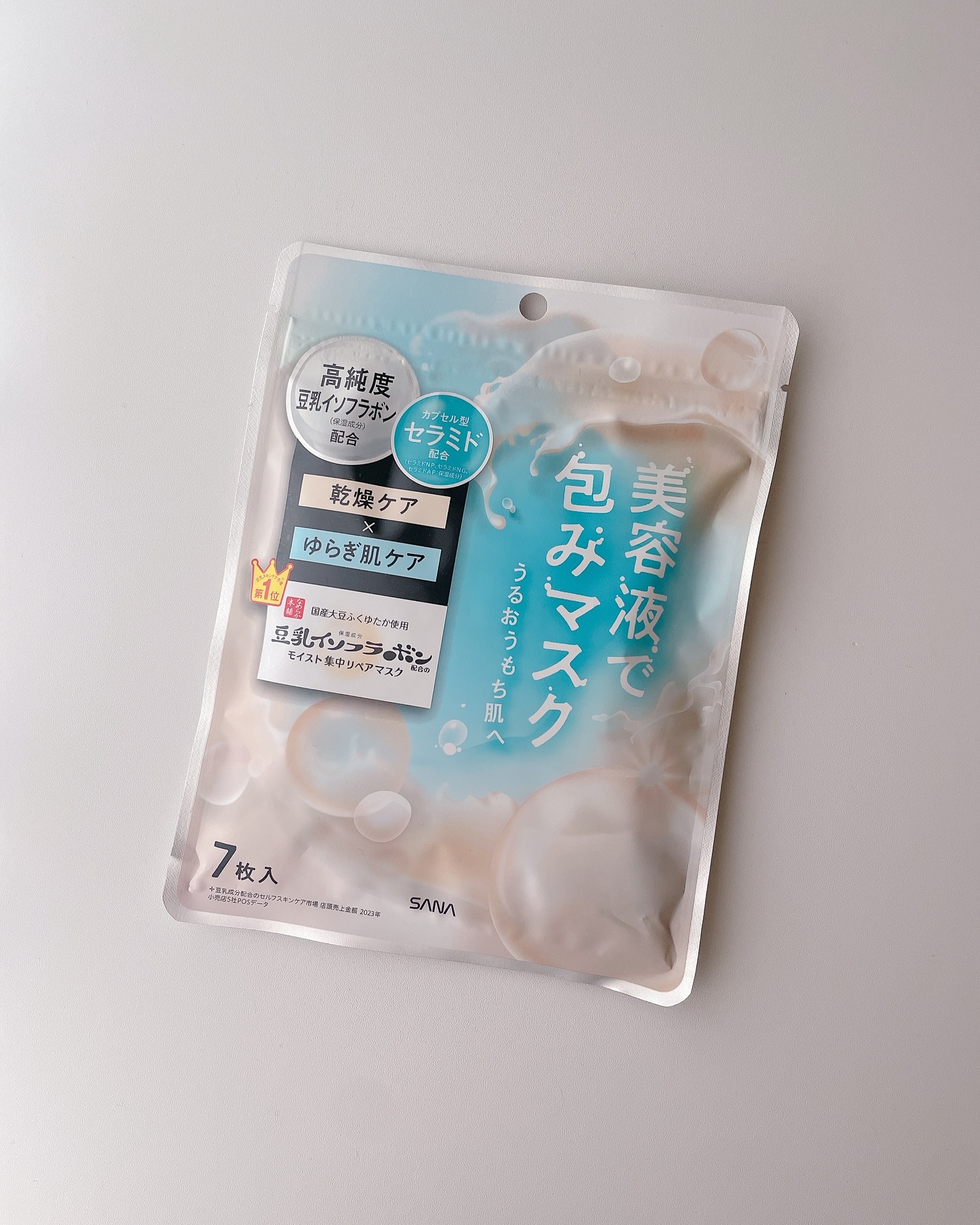- ゆらぎがちなお肌を整えてうるおい肌へ導く 7 枚入りのマスクです。高純度豆乳イソフラボン※2 とふくゆたか使用の豆乳発酵液※2 、大豆由来の美容成分※4 でカプセル化した 3 種のセラミド※5 を贅沢配合した、まるで豆乳のような 美容液で包みます。乾燥を防ぎ「守り」のケアを実現。うるおいキープ成分(グリセリルグルコシド、パンテノール、エクトイン/保湿成 分)、整肌成分(グリチルリチン酸2K、アラントイン)配合で、うるおいを保ち、なめらかな素肌に。お肌を包み込む、ぴたっと密着シート を採用。美容液をたくわえて浸透※6 させる高密着の 3 層構造シートとたっぷり 150g の美容液で、お肌をうるおいで満たします。 ※2 保湿成分 ※3 N-ステアロイルジヒドロスフィンゴシン(保湿成分) ※4 水添レシチン(保湿成分) ※5 セラミド NP、セラミド NG、セラミド AP(保湿成分) ※6 角層まで