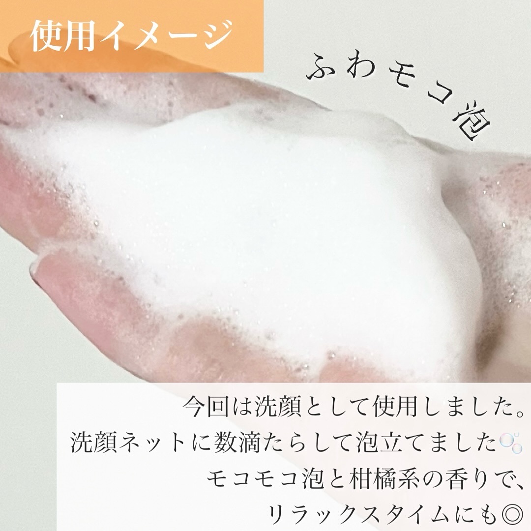 とにかく香りが好き🍊 ボディソープとしてはもちろん洗濯や食器洗いと12通りの使い方がある 新しいシトラスオレンジの香りもめっちゃよかった! 泡だてネットを使えば少量でふわモコの泡ができて全身一気に洗えるのが気持ちいい✨ シトラスオレンジの香りはフレッシュでちゃんと柑橘系の皮っぽい香りも感じられて お気に入り😆